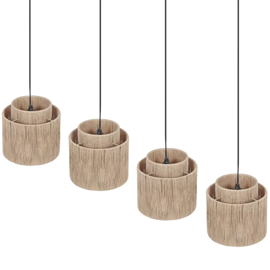 De SMILLA hanglamp combineert boho-stijl met een vleugje natuur en brengt lichtheid en gezelligheid in je huis. De unieke lampenkappen van natuurlijk jute creëren een fascinerend spel van licht en schaduw dat je kamer een speciale sfeer geeft. Het samenspel van natuurlijk jute en mat zwart metaal creëert een harmonieuze balans tussen rustieke charme en eigentijds design. Het gebruik van LED lichtbronnen wordt aanbevolen voor energiebesparende verlichting. Deze vormen een ideaal alternatief voor conventionele halogeenlichtbronnen en bieden een hoge lichtkwaliteit en energiebesparingen tot 80%. Met LED lichtbronnen profiteert u ook van een lange levensduur en een lage warmteontwikkeling, terwijl het milieu wordt beschermd.
