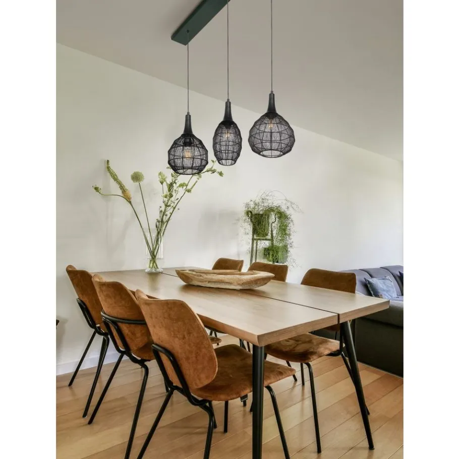 The SORAYA pendant light fascinates with its impressive wire mesh and creates a unique interplay of light and shadow that is reminiscent of the splendour of 1001 Nights. Its airy, elegant character adds a touch of oriental flair to any dining or living area. The matt black colour scheme underlines the exotic charm and sets stylish accents. The use of LED light sources is recommended for energy-saving lighting. These are an ideal alternative to conventional halogen light sources and offer high light quality and energy savings of up to 80%. With LED light sources, you also benefit from a long service life and low heat generation while protecting the environment.