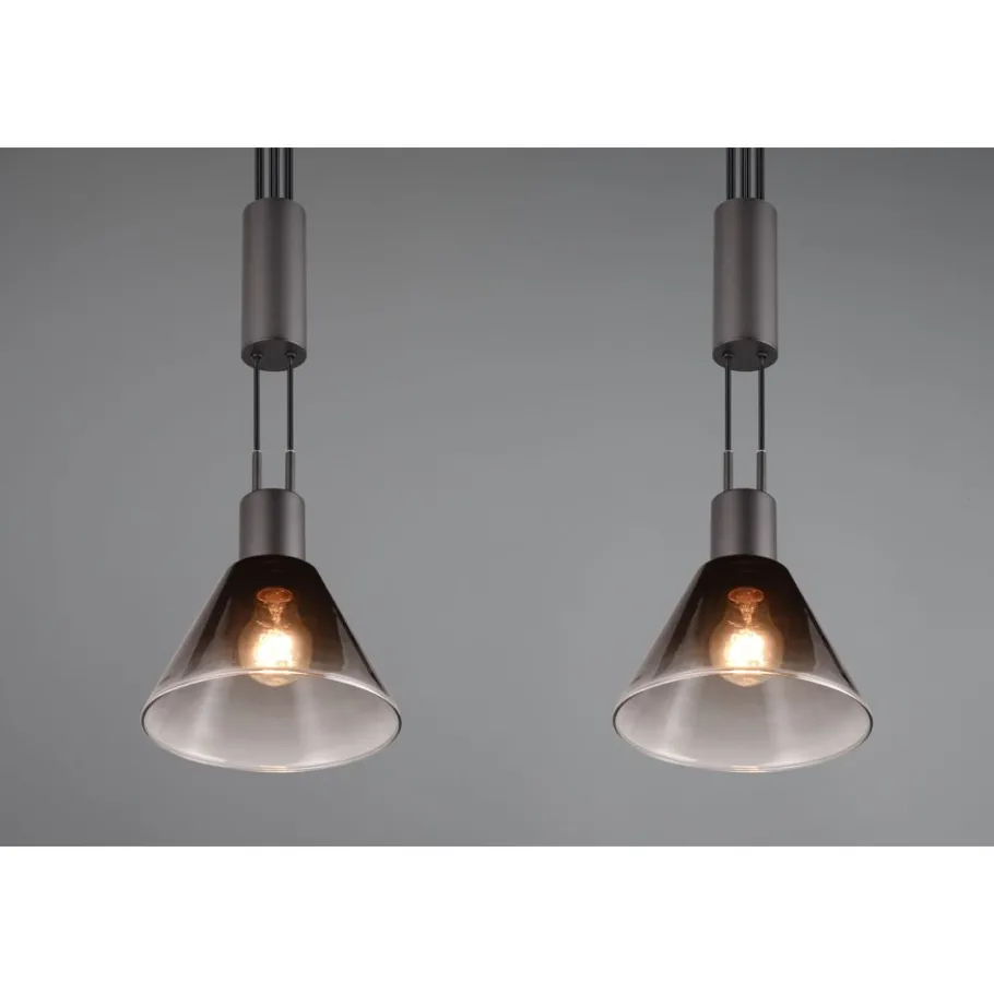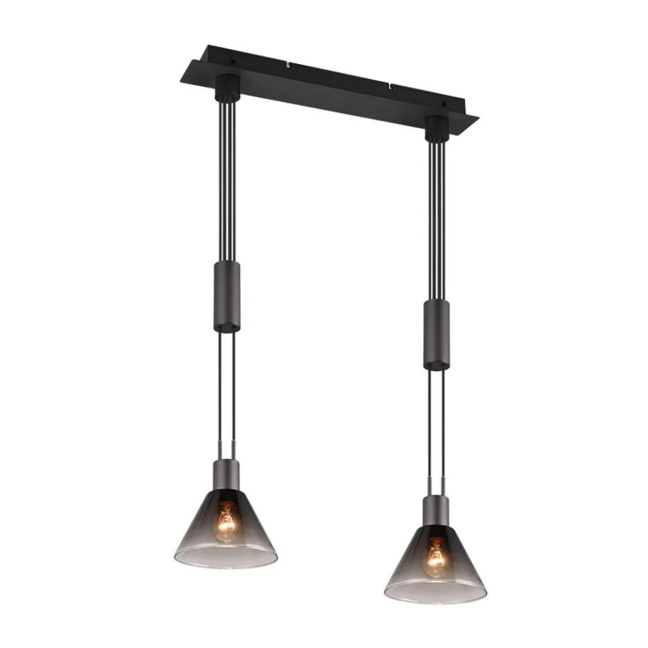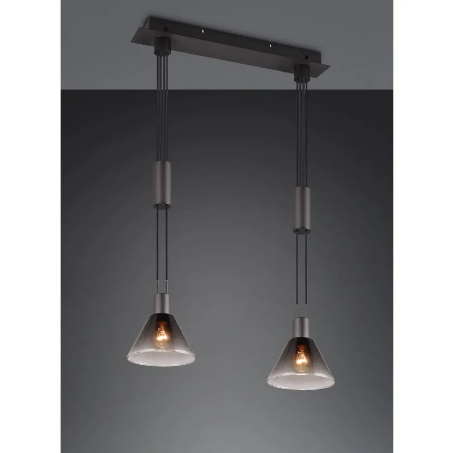 De tweelichts STANLEY hanglamp zet bijzondere lichtaccenten in je woonkamer. Het kleurenschema en het ontwerp van het glas creëren een magische flair en een elegant lichtspel boven je eet- of woonkamertafel. De in hoogte verstelbare elementen zorgen voor een flexibele lichtverdeling naar wens en ronden de sfeer perfect af. Het matzwarte metaal en de rookkleurige glazen kap stralen koelte en moderniteit uit in je woonkamer. Het gebruik van LED lichtbronnen wordt aanbevolen voor energiebesparende verlichting. Deze vormen een ideaal alternatief voor conventionele halogeenlichtbronnen en bieden een hoge lichtkwaliteit en energiebesparingen tot 80%. Met LED lichtbronnen profiteert u ook van een lange levensduur en een lage warmteontwikkeling, terwijl het milieu wordt beschermd.