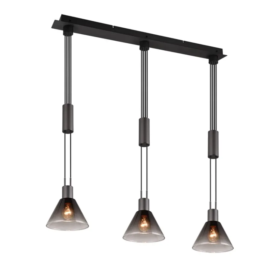 De tweelichts STANLEY hanglamp zet bijzondere lichtaccenten in je woonkamer. Het kleurenschema en het ontwerp van het glas creëren een magische flair en een elegant lichtspel boven je eet- of woonkamertafel. De in hoogte verstelbare elementen zorgen voor een flexibele lichtverdeling naar wens en ronden de sfeer perfect af. Het matzwarte metaal en de rookkleurige glazen kap stralen koelte en moderniteit uit in je woonkamer. Het gebruik van LED lichtbronnen wordt aanbevolen voor energiebesparende verlichting. Deze vormen een ideaal alternatief voor conventionele halogeenlichtbronnen en bieden een hoge lichtkwaliteit en energiebesparingen tot 80%. Met LED lichtbronnen profiteert u ook van een lange levensduur en een lage warmteontwikkeling, terwijl het milieu wordt beschermd.