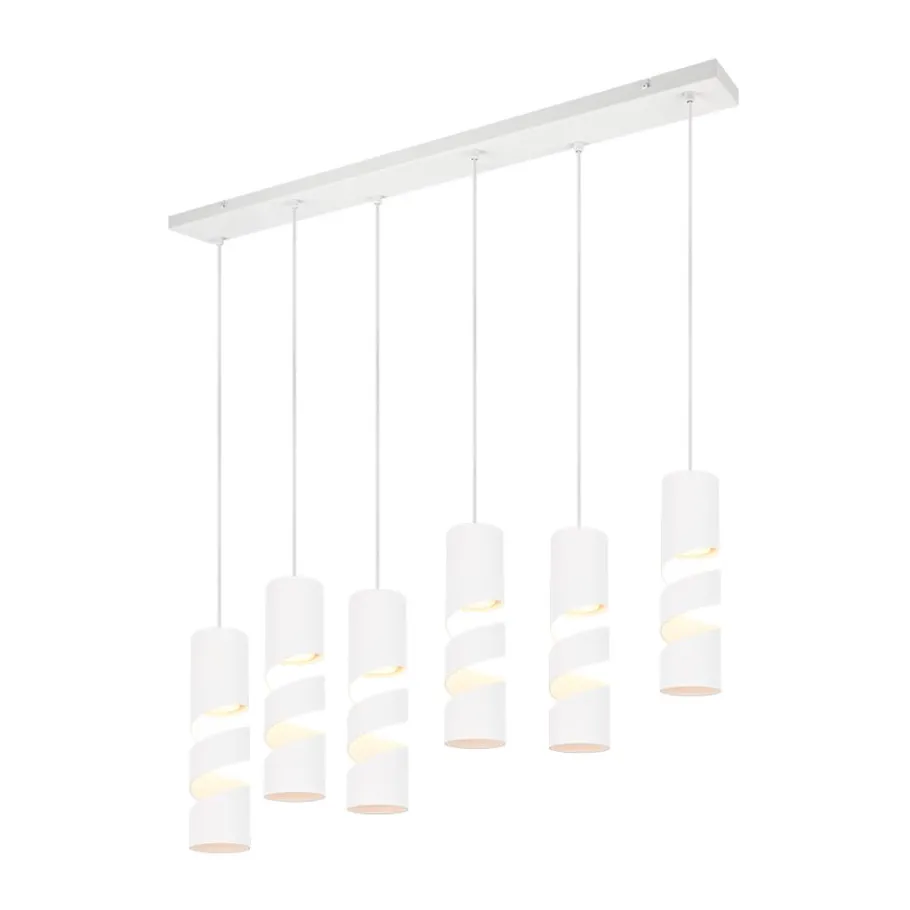 Ontdek de zes-lichts hanglamp uit de STREAM serie – een fascinerend meesterwerk dat doet denken aan de elegante vorm van kurkentrekkers. Met haar moderne maar tijdloze ontwerp brengt de STREAM hanglamp ongeëvenaarde elegantie in je huis. De slanke, cilindrische vorm van de lampenkappen maakt ze de perfecte keuze voor verlichting boven eettafels of aanrechten. Met zijn matte witte uiterlijk is hij een stijlvolle aanwinst voor elk interieur en zet hij smaakvolle accenten. Het gebruik van LED lichtbronnen wordt aanbevolen voor energiebesparende verlichting. Deze vormen een ideaal alternatief voor conventionele halogeenlichtbronnen en bieden een hoge lichtkwaliteit en energiebesparingen tot 80%. Met LED lichtbronnen profiteert u ook van een lange levensduur en een lage warmteontwikkeling, terwijl het milieu wordt beschermd.