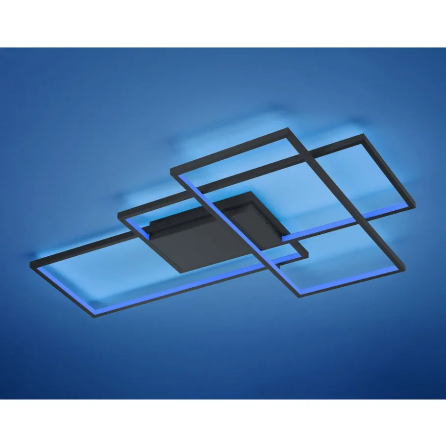 Get your light connected! De plafondlamp THIAGO levert een innovatief, flexibel en slim lichtdesign. WiZ-lampen bieden een ongelooflijk kleurenspectrum van 16 miljoen kleuren en 64.000 wittinten. Laat u wekken door zacht zonnelicht, begin boordevol energie aan de dag, ontspan u met rustgevend licht of maak van de nacht dag en dat alles helemaal eenvoudig via app. In tegenstelling tot andere Smart Home-providers is bij WiZ-lampen geen extra gateway nodig, zodat alle lampen volledig flexibel via een mobiel eindapparaat bediend kunnen worden. Bovendien kunnen de lampen gecombineerd worden met Alexa of Google Home, zodat de bediening via spraakassistent mogelijk is. Maar ook met de meegeleverde afstandsbediening of via de lichtschakelaar kunnen verschillende lichtprogramma’s en instellingen geselecteerd worden. Nog een voordeel is de flexibiliteit bij het gebruik: Zo kunnen de WiZ-lampen door meerdere gebruikers bediend, aan verschillende ruimtes of locaties toegekend en van overal bestuurd worden. De combinatie uit drie filigrane rechthoeken leidt tot een moderne lamp voor de woonzone of hal. De plafondlamp is in antraciet en laat zich probleemloos integreren in voor handen zijnde kleurconcepten. Daarnaast beschikt de lamp over een moderne ledtechnologie die zich onderscheidt met een hoge lichtkwaliteit en energie-efficiëntie. In vergelijking met gewone halogeenlampen kan tot 80% bespaard worden op de energiekosten. Bovendien hebben ledlampen een lange levensduur, produceren minder warmte en zijn milieuvriendelijk.