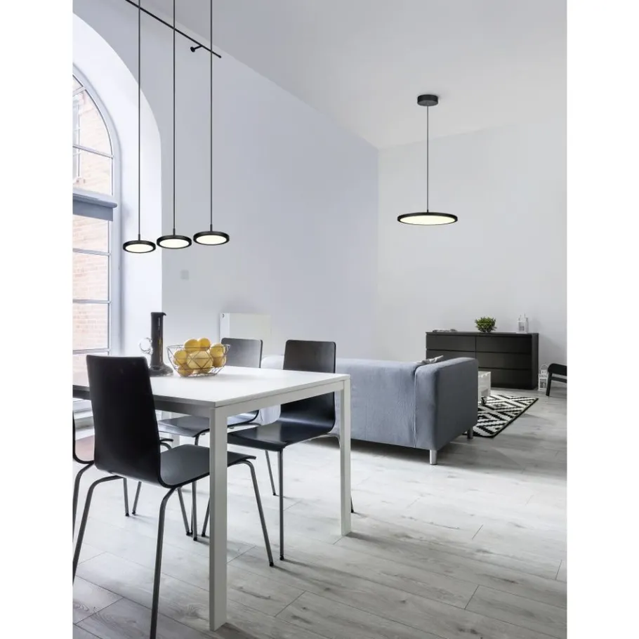 De serie TRAY weerspiegelt met heldere en elegante lijnen een tijdloos design. De drievlammige hanglamp verrijkt uw huis met haar smaakvolle eenvoud in pure kleuren en met haar veelzijdige toepassingsmogelijkheden. Midden boven de eettafel geplaatst, trekt de TRAY iedereens aandacht en schept een gezellige sfeer. De lamp kan niveauloos gedimd worden met een externe lichtregelaar, waardoor u de lichtintensiteit naar wens kunt aanpassen. In de strakke kleur mat zwart past de lamp in elke inrichtingsstijl. Daarnaast beschikt de lamp over een moderne ledtechnologie die zich onderscheidt met een hoge lichtkwaliteit en energie-efficiëntie. In vergelijking met gewone halogeenlampen kan tot 80% bespaard worden op de energiekosten. Daarnaast hebben ledlichtbronnen een lange levensduur, genereren minder warmte en zijn milieuvriendelijk.