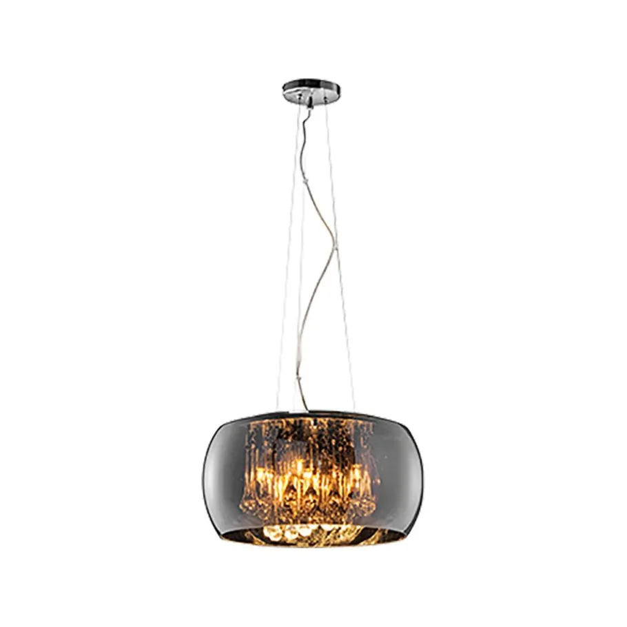 Karakteristieke armaturen zoals die in de VAPORE-serie geven een ruimte elegantie en individuele charme. In onverlichte toestand staat de verchroomde glazen kap in het middelpunt, maar zodra de VAPORE lamp wordt ingeschakeld, straalt hij in nieuwe pracht. Als de lamp aangaat, wordt het anders gespiegelde glas transparant en worden de geïntegreerde glazen druppels zichtbaar. Het contrast van materiaal, kleur en speelse details maakt het armatuur uniek en geeft de ruimte een warme en mysterieuze sfeer. De hanglamp heeft een diameter van 40 cm en een maximale ophanglengte van 150 cm, die tijdens de installatie kan worden gespecificeerd. De vijf G9 lampen geven elk 624 lumen af bij 42 watt en een warmwitte lichtkleur van 2800 Kelvin.