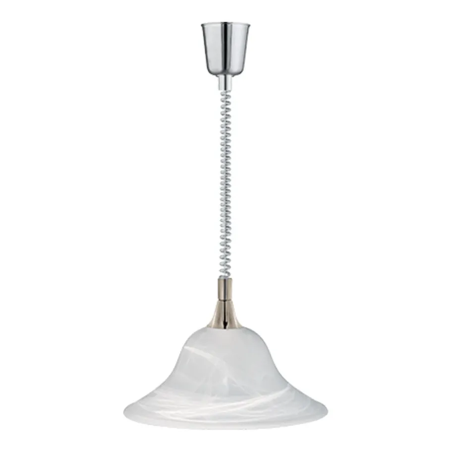 De VIOLA hanglamp is aan de onderkant wijd open en zorgt daardoor voor een optimale verlichting. Ze heeft een diameter van 39 cm en is in hoogte verstelbaar van 70 cm tot 30 cm. Dankzij de matte nikkelkleur en het albastkleurige glas kan de plafondlamp naadloos worden geïntegreerd in talrijke inrichtingsstijlen. Voor een energiebesparende verlichting is het gebruik van een ledlichtbron aanbevolen. Deze zijn een optimaal alternatief voor gewone halogeenlampen en staan voor een hoge lichtkwaliteit en een energiebesparing van tot 80%. Bovendien profiteert u bij ledlichtbronnen van een lange levensduur, een geringe warmteontwikkeling en spaart tegelijkertijd het milieu.