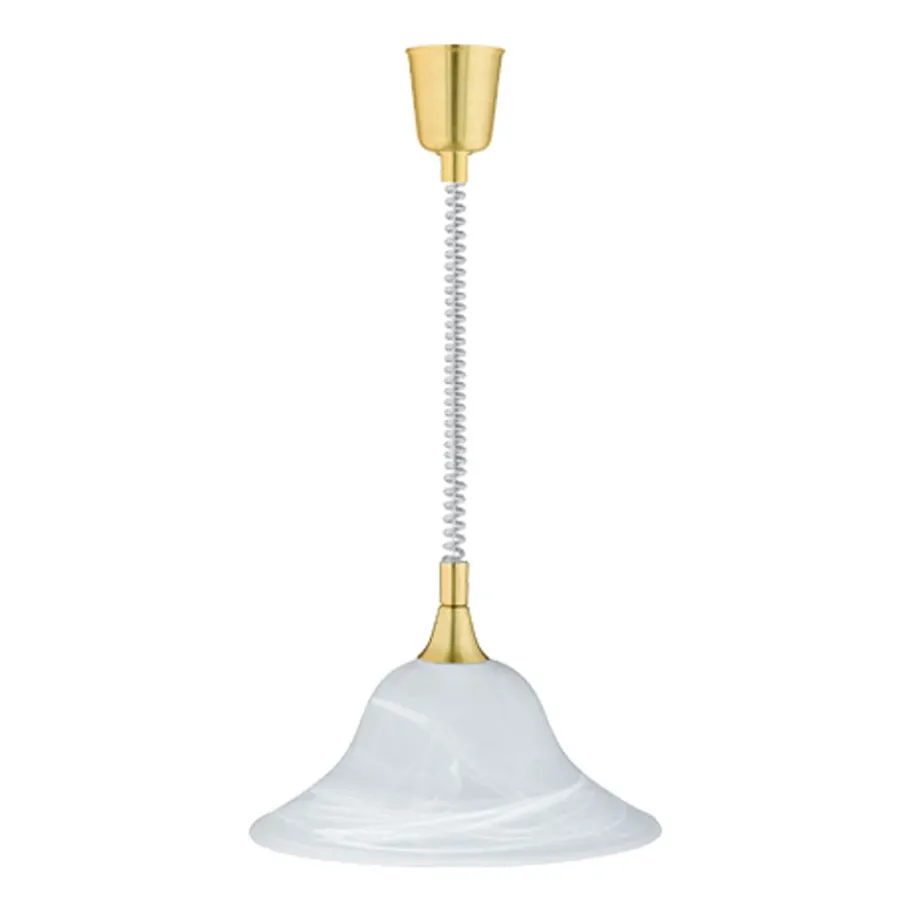 De VIOLA hanglamp is aan de onderkant wijd open en zorgt daardoor voor een optimale verlichting. Ze heeft een diameter van 39 cm en is in hoogte verstelbaar van 70 cm tot 30 cm. Dankzij de matte messing kleur en het albastkleurige glas kan de plafondlamp worden geïntegreerd in met name klassieke inrichtingsstijlen. Voor een energiebesparende verlichting is het gebruik van een ledlichtbron aanbevolen. Deze zijn een optimaal alternatief voor gewone halogeenlampen en staan voor een hoge lichtkwaliteit en een energiebesparing van tot 80%. Bovendien profiteert u bij ledlichtbronnen van een lange levensduur, een geringe warmteontwikkeling en spaart tegelijkertijd het milieu.