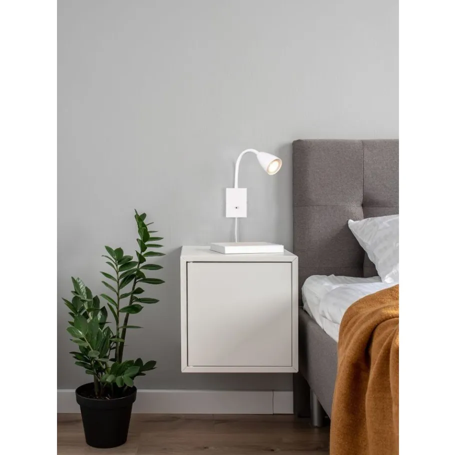 Creëer mooie lichtmomenten in uw slaapkamer met de klassieke wandlamp WANDA. Op de juiste plaats geplaatst, zorgt ze voor een optimale verlichting door de flexibele en individuele instelmogelijkheden. De flexibiliteit van de lamp wordt uitgebreid met de FLEXconnect-functie, omdat ze ook geschikt is voor een vaste aansluiting zonder kabel en bedienbaar met een gewone wandschakelaar. In dit geval kan het snoer van de lamp worden verwijderd. Het moderne en elegante design wordt onderstreept door de mat witte kleur. Voor een energiebesparende verlichting is het gebruik van een ledlichtbron aanbevolen. Deze zijn een optimaal alternatief voor gewone halogeenlampen en staan voor een hoge lichtkwaliteit en een energiebesparing van tot 80%. Bovendien profiteert u bij ledlichtbronnen van een lange levensduur, een geringe warmteontwikkeling en spaart tegelijkertijd het milieu.