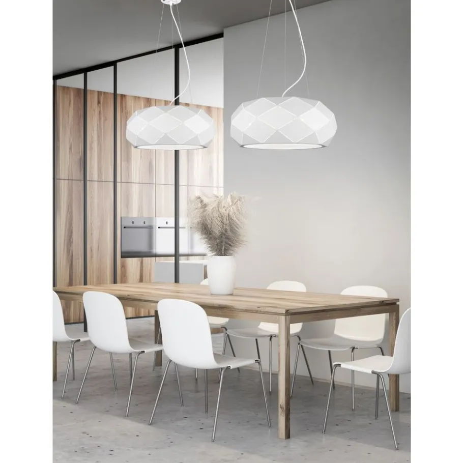 De moderne ZANDOR hanglamp is een echte blikvanger in elke woonkamer. Het meeste licht ontsnapt naar boven en naar beneden. Het mooie patroon van het armatuur laat ook hier wat licht ontsnappen. De ZANDOR wandlamp is daarom bijzonder geschikt voor aanvullende of accentverlichting, omdat de focus natuurlijk niet ligt op een heldere verlichting, maar op een sfeervol effect. De lamp heeft een diameter van 50 cm en een hoogte van 18/150 cm. Het armatuur is gemaakt van mat wit metaal. Daarnaast beschikt de lamp over een moderne ledtechnologie die zich onderscheidt met een hoge lichtkwaliteit en energie-efficiëntie. In vergelijking met gewone halogeenlampen kan tot 80% bespaard worden op de energiekosten. Bovendien hebben ledlampen een lange levensduur, produceren minder warmte en zijn milieuvriendelijk.