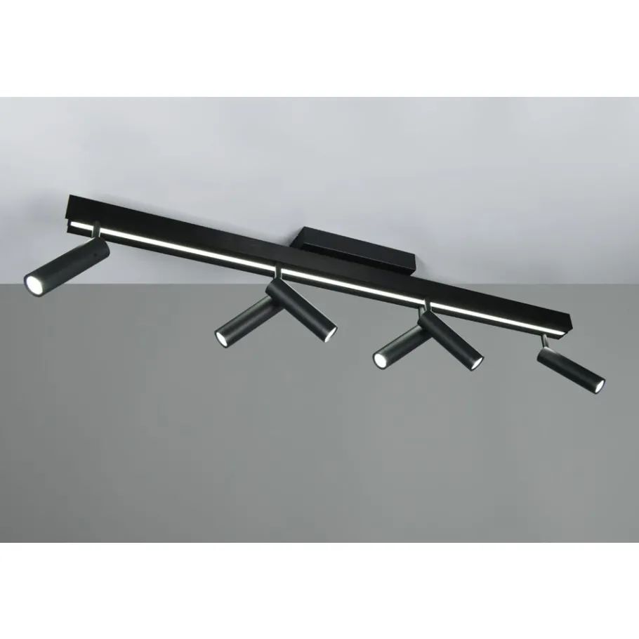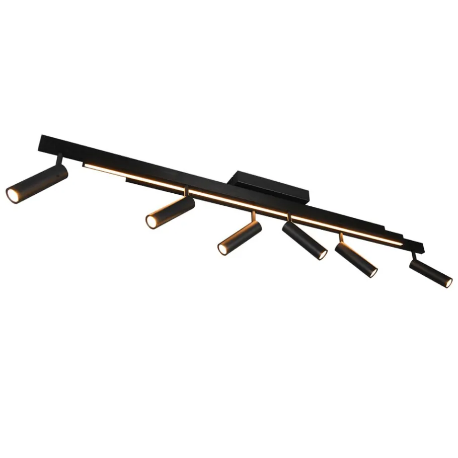 Veelzijdige verlichting in een stijlvol design – De plafondlamp ZENO maakt indruk met drie parallelle, langwerpige elementen die eenvoudig uit elkaar getrokken kunnen worden om het licht aan te passen aan jouw behoeften en de ruimte. Daarnaast bieden zes verplaatsbare spots nog meer opties voor een gericht lichtontwerp in je woonruimte. Met de meegeleverde afstandsbediening kun je de lichtkleur en helderheid eenvoudig op afstand regelen. Het matzwarte metaal geeft de lamp een elegante en moderne uitstraling. De armatuur is ook voorzien van moderne LED-technologie, die wordt gekenmerkt door een hoge lichtkwaliteit en energie-efficiëntie. Vergeleken met conventionele halogeenlichtbronnen kan tot 80% op de energiekosten worden bespaard. LED lichtbronnen hebben ook een lange levensduur, produceren minder warmte en beschermen het milieu.