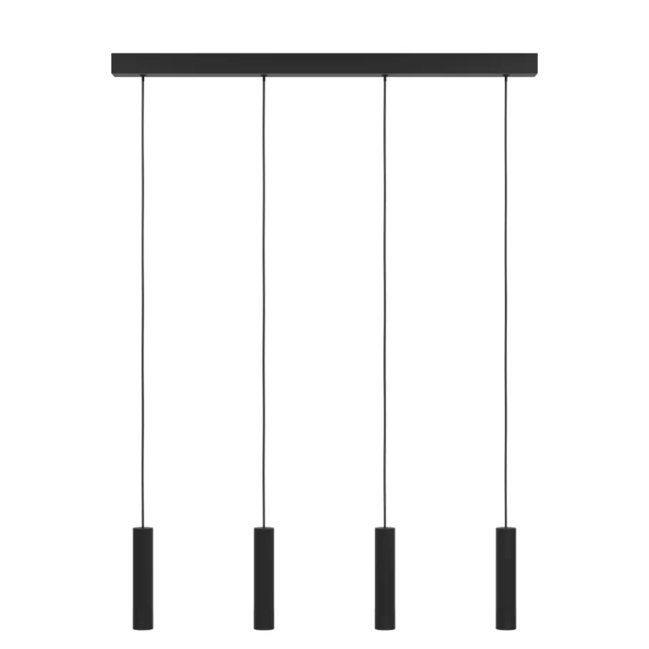 Deze ALMUDAINA hanglamp is gemaakt van een rechthoekige basis in zwart staal met daaraan vier simpele buisvormige lampen met geïntegreerde LED lichtbronnen. De lamp brengt een sfeervol warm wit licht van 1920 lumen en is dimbaar. Ideaal voor boven de eettafel.