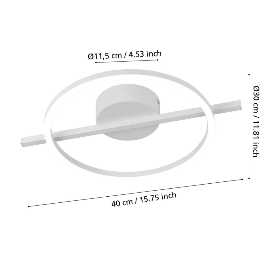 Deze AMANDOLO wandlamp/plafondlamp is gemaakt van zwart aluminium en staal en witte kunststof. Hij bevat geïntegreerde LED die dimbaar is en wit licht tot 1900 lumen schijnt. De afmetingen van dit armatuur bedragen 40cm lengte, 30cm breedte en 6,5cm hoogte.