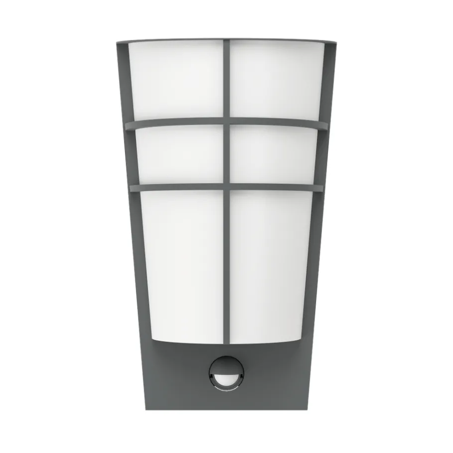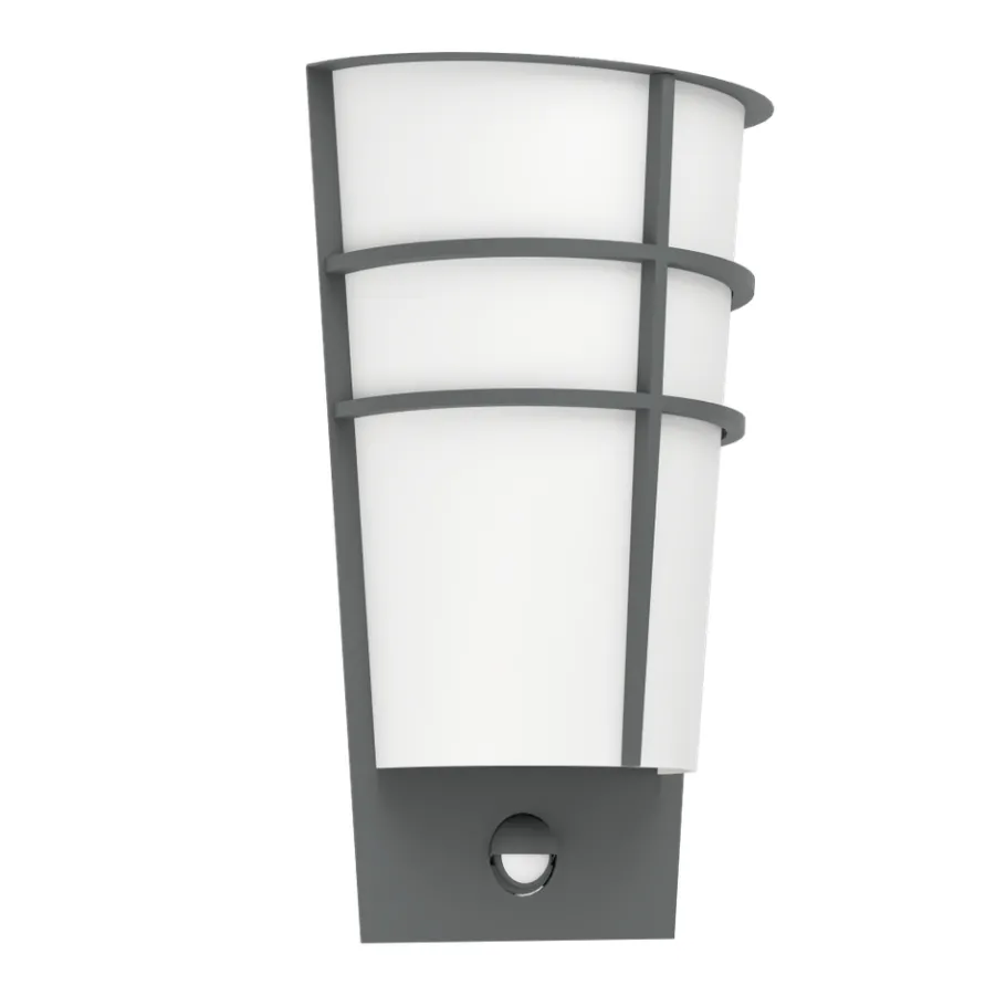 De LED-buitenwandlamp BREGANZO 1 heeft een behuizing van gegalvaniseerd metaal in antracietkleur, waarvan de buitenranden zachtjes rond de witte kunststof kap buigen. Het armatuur is uitgerust met een bewegingssensor die het licht automatisch inschakelt. Dit helpt om slecht zichtbare gebieden te verlichten en ongewenste bezoekers af te schrikken. De geïntegreerde schemersensor meet de omgevingshelderheid en schakelt het licht alleen in als het echt nodig is. De geïntegreerde LEDs geven een aangenaam warm wit licht. Het armatuur is bovendien spatwaterdicht (IP44), zodat het zonder vrees buiten kan worden gebruikt. Dankzij haar tijdloze design past ze in elke moderne buitenruimte: de ideale buitenwandlamp voor ingangen, terrassen of balkons.