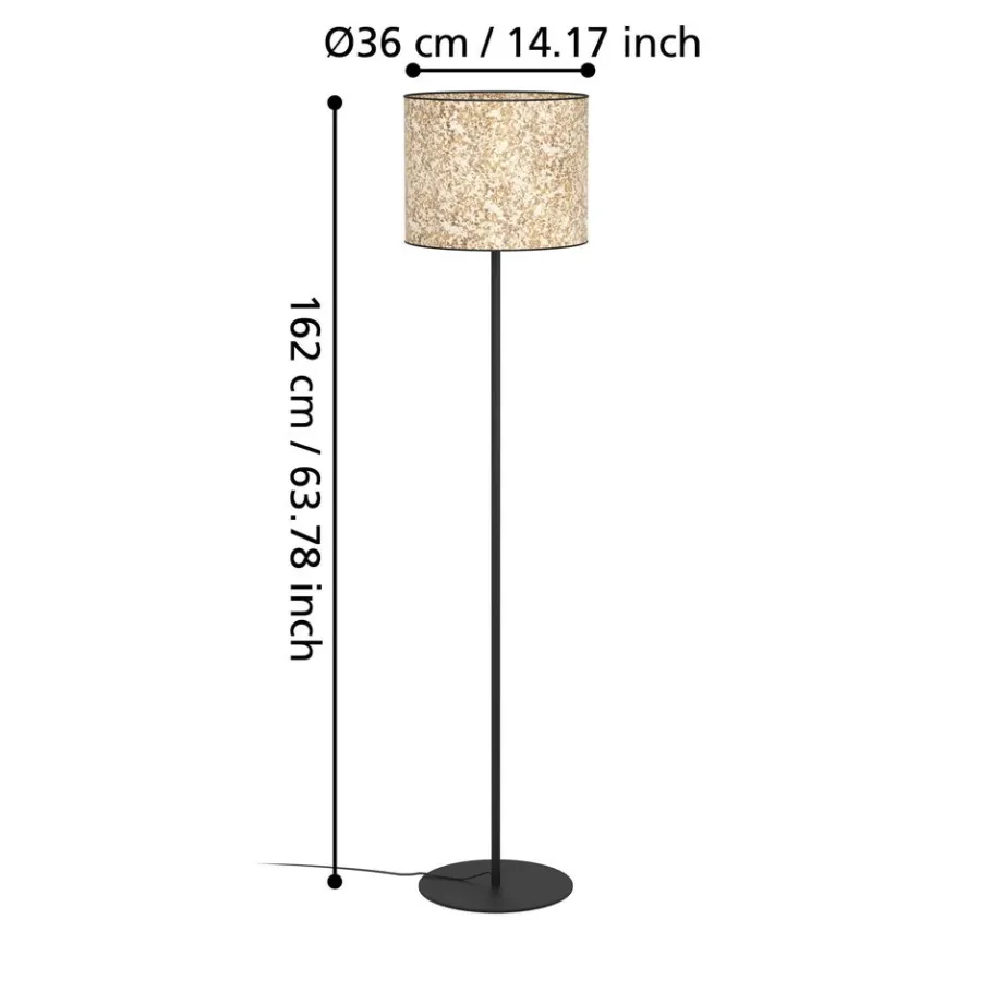 Eglo BUTTERBURN Staande lampen staal zwart / textiel met berkenbladeren beige, groen H: 1620 mm | Ø 360 mm Discount