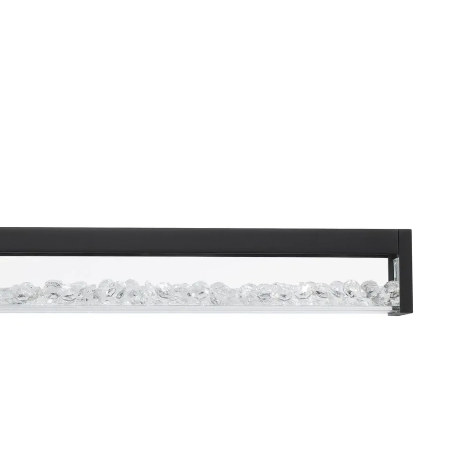 De Cardito 1 LED hanglamp is gemaakt van zwart metaal en aluminium en tevens gecombineerd met een langwerpige glazen behuizing waarin fonkelende kristallen zitten. Zodra de lamp aangaat, zorgen de transparante glaskristallen voor een sprankelende en nobele uitstraling. De geïntegreerde LED’s zorgen voor aangenaam licht geheel naar jouw wensen. Je hebt de keuze tussen warm wit, neutraal wit en koud wit licht. Via de “touch me”-zones op de armatuurbehuizing kan de pendel worden in- en uitgeschakeld en kan de kleurtemperatuur worden aangepast. Sowieso is de hanglamp met een lengte van 100 cm een ??bijzondere en elegante eyecatcher in je woonkamer, bijvoorbeeld in de eetkamer aan een langwerpige eettafel.