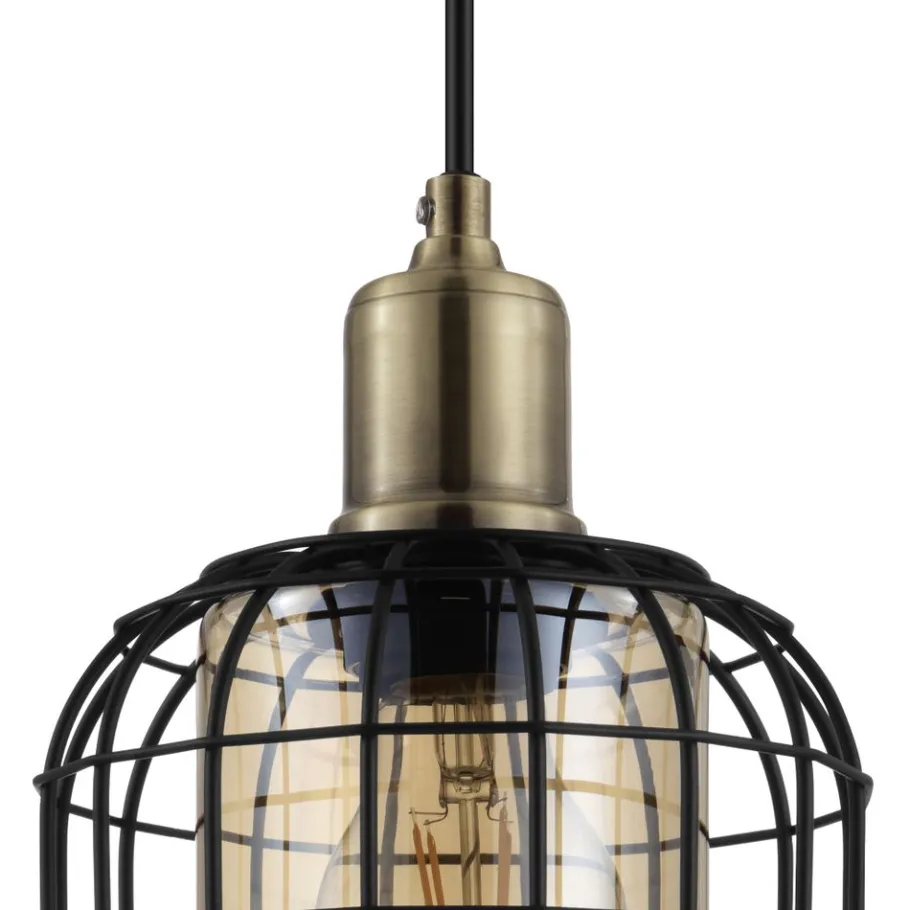 De hanglamp CHISLE bestaat uit een draadkap met een amberkleurige matglazen body die aan een zwarte metalen kap hangt. Het raster van de kap creëert een fascinerend spel van licht en schaduw wanneer het armatuur wordt ingeschakeld. Deze hanglamp met zijn prachtige combinatie van elegant glas en rustiek metaal past perfect in moderne loft-achtige interieurs. Het is een blikvanger in elke ruimte, of het nu in de woonkamer is of in de eetkamer boven de tafel. De afgebeelde lichtbron is niet inbegrepen. Het armatuur is compatibel met elke E27 lamp.