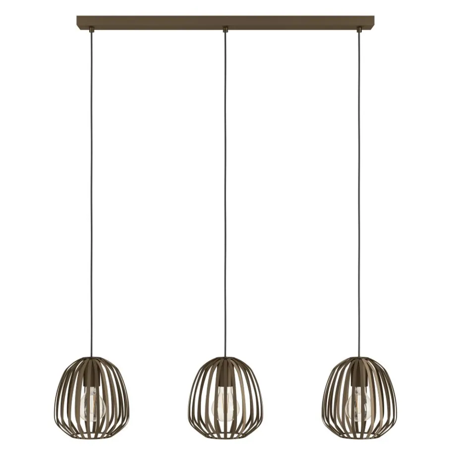 Deze Espinal hanglamp is gemaakt van bronskleurig staal en heeft drie E27-lichtbronnen nodig om te schijnen (niet inclusief). Hij meet 90cm lang, 19,5cm breed en heeft een verstelbare hoogte van 110cm. Deze hanglamp zorgt voor een mooi lichtspel boven je eettafel.