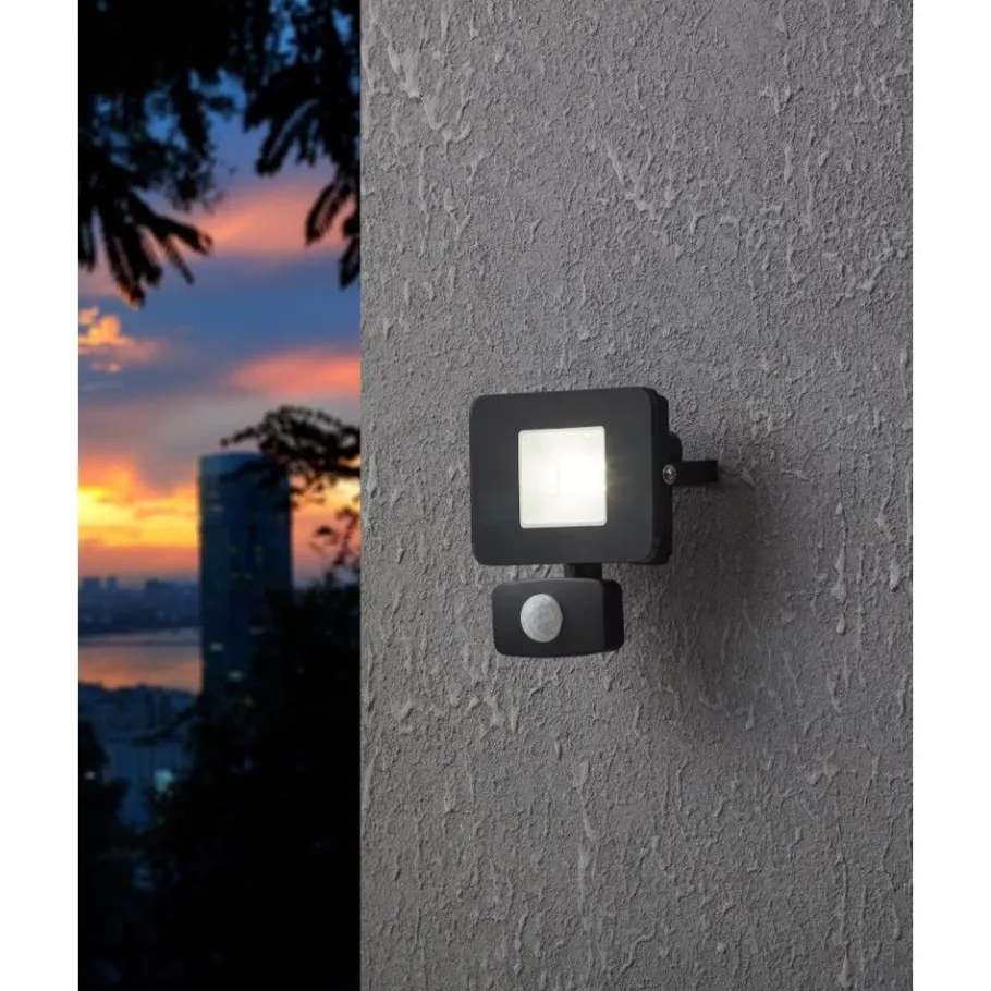 De LED-buitenwandarmatuur FAEDO 3 bestaat uit een rechthoekige behuizing met afgeronde hoeken uit gegoten aluminium en een zwarte poedercoating. Het centrale lichtvlak is van helder glas. Het lichtlichaam van 11 x 8 cm kan met de draaibare wandhouder aan de achterkant van het armatuur omhoog en omlaag worden gekanteld om een optimale verlichtingshoek te bereiken. De geïntegreerde LEDs geven een krachtig neutraal wit licht. De wandlamp is uitgerust met een bewegingsdetector en schakelt automatisch het licht in om slecht zichtbare plaatsen te verlichten en ongewenste bezoekers af te schrikken. De geïntegreerde schemersensor meet het omgevingslicht en schakelt het licht alleen in als het echt nodig is. Beschermd tegen stof en waterstralen (IP65) kan hij zonder zorgen buiten worden gebruikt. Als grondverlichting, bij de ingang van het huis of onder een carport, met zijn tijdloze design past deze wandlamp in de meest uiteenlopende buitenruimtes en verlicht ze veilig en betrouwbaar.