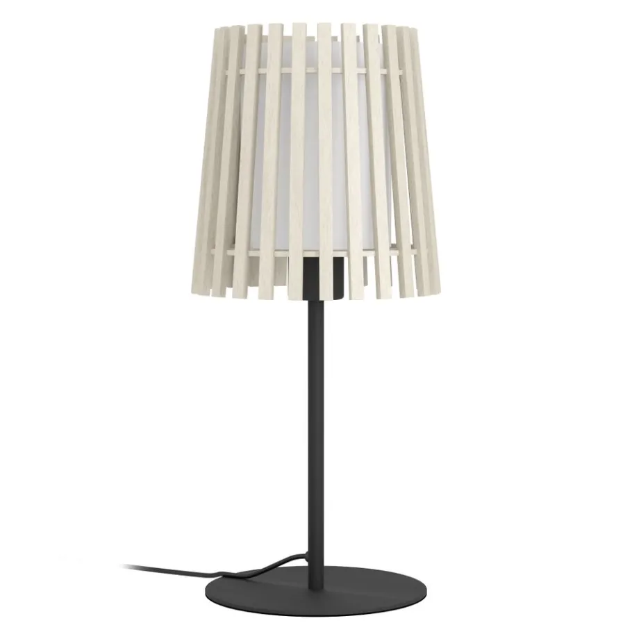 Eglo FATTORIA Tafellampen staal zwart / hout, textiel natuur, wit H: 450 mm | Ø 200 mm Discount