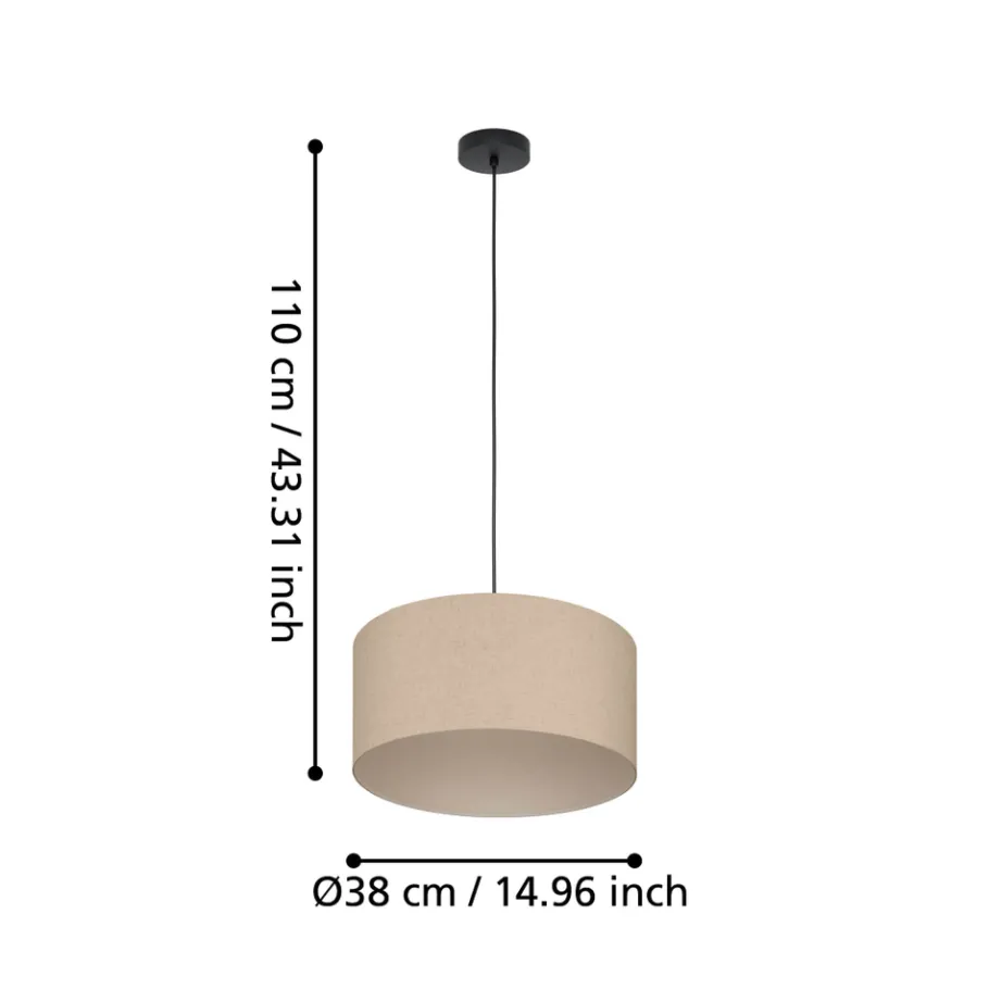 Eglo FENIGLIA hanglamp staal zwart / textiel, linnen natuur H: 1100 mm | Ø 380 mm Clearance