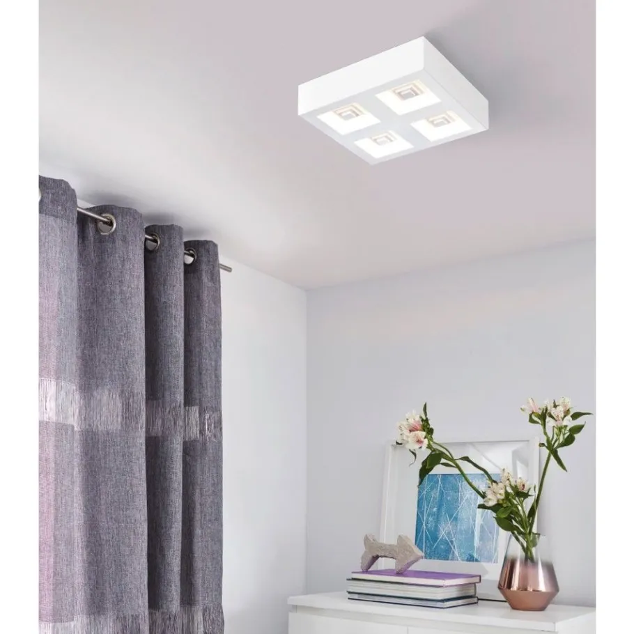 De LED-plafondlamp FERREROS bestaat uit een vierkant wit metalen lichaam. Binnenin de armatuur bevinden zich vier vierkante witte kunststof verlichtingselementen in de vorm van treden die naar binnen stralen en zo voor een aangename indirecte verlichting zorgen. De geïntegreerde LEDs geven een warm wit licht. De moderne plafondlamp past in bijna elk interieur en is geschikt voor elke ruimte – of het nu in de keuken, woonkamer, slaapkamer of hal is.