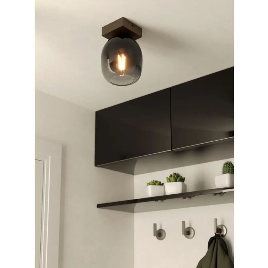 Eglo FILAGO Plafondarmaturen hout, staal bruin / Glas zwart, grijs, transparant H: 200 mm | Ø 145 mm New