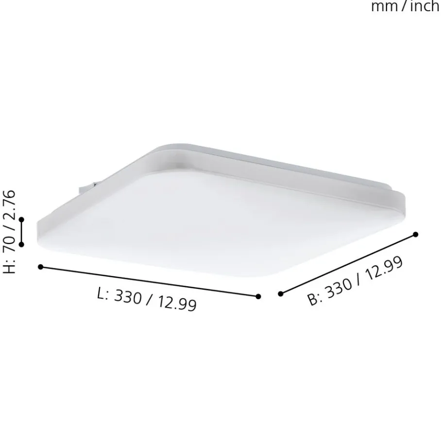 De LED-plafondlamp FRANIA bestaat uit een vierkante witte kunststof kap met afgeronde hoeken en een wit metalen achterzijde. De geïntegreerde LEDs geven een aangenaam warm wit licht. De eenvoudige plafondlamp met een afmeting van 33 x 33 cm biedt tijdloze verlichting en kan ook probleemloos als wandlamp worden gebruikt. Het past perfect in moderne interieurs, bijvoorbeeld in de keuken, woonkamer, slaapkamer of hal.