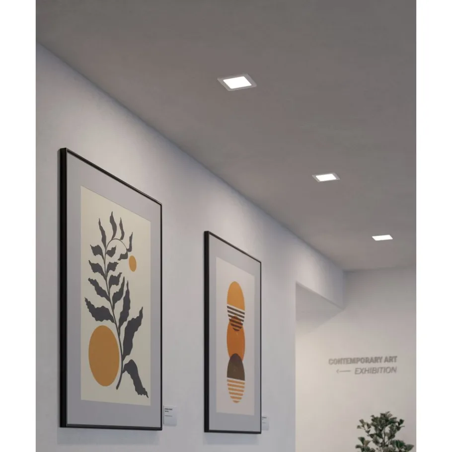 De 117 mm hoge LED-inbouwarmatuur FUEVA 5 is uitgevoerd in wit metaal. Dankzij zijn zeer geringe inbouwdiepte van slechts 26 mm en zijn vierkante vorm met afgeronde hoeken past hij perfect in elk interieur en kan hij ook in isolatie worden ingebouwd. De geïntegreerde LEDs stralen een aangenaam warm wit licht uit en blijven onzichtbaar dankzij de witte diffuser. Voor de installatie is een uitsparing van 105 mm diameter vereist. Dankzij het tijdloze ontwerp van deze inbouwspot kan hij in elke ruimte worden gebruikt, of het nu gaat om de keuken, de woonkamer, de slaapkamer, de hal of de eetkamer.