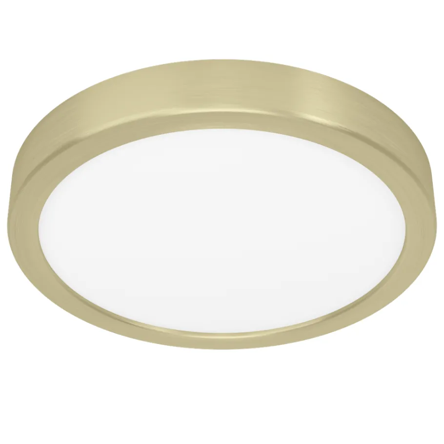 De LED-armatuur FUEVA 5 in geborsteld messing met een montagehoogte van slechts 28 mm past in bijna elke woonruimte. De geïntegreerde LEDs geven een aangenaam warm wit licht en zijn niet zichtbaar door de witte diffuser. Door de lage montagehoogte kan de plafondlamp ook probleemloos als wandlamp worden gebruikt. De hoogwaardige armatuur zonder zichtbare schroeven op de behuizing is dankzij de speciale plafondbeugel bijzonder eenvoudig te installeren. Dankzij het tijdloze ontwerp van de opbouwlamp en de diameter van 210 mm kan deze in elke ruimte worden gebruikt of het nu in de woonkamer, slaapkamer, hal of eetkamer is.