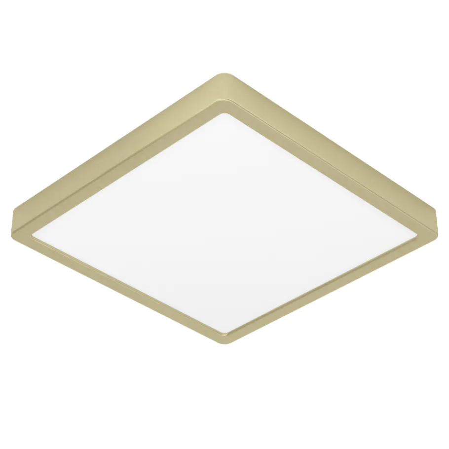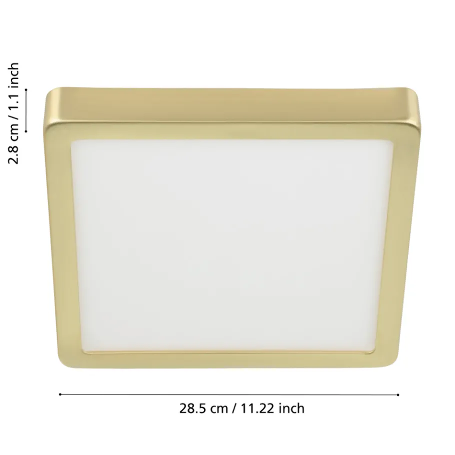 Uit geborsteld messingkleurig metaal past de LED-opbouwarmatuur FUEVA 5 dankzij haar zeer geringe hoogte van slechts 28 mm in nagenoeg elke interieurstijl. De geïntegreerde LEDs stralen een aangenaam warmwit licht uit en blijven dankzij de witte diffuser onzichtbaar. Dankzij de geringe hoogte kan deze plafondlamp ook probleemloos als wandlamp worden gebruikt. Dit hoogwaardige armatuur zonder zichtbare schroeven op de behuizing is eenvoudig te installeren dankzij de speciale plafondbeugel. Dankzij het tijdloze design en het formaat van 285 x 285 mm kan dit opbouwarmatuur in elke ruimte worden gebruikt, of het nu in de woonkamer, slaapkamer, hal of eetkamer is.