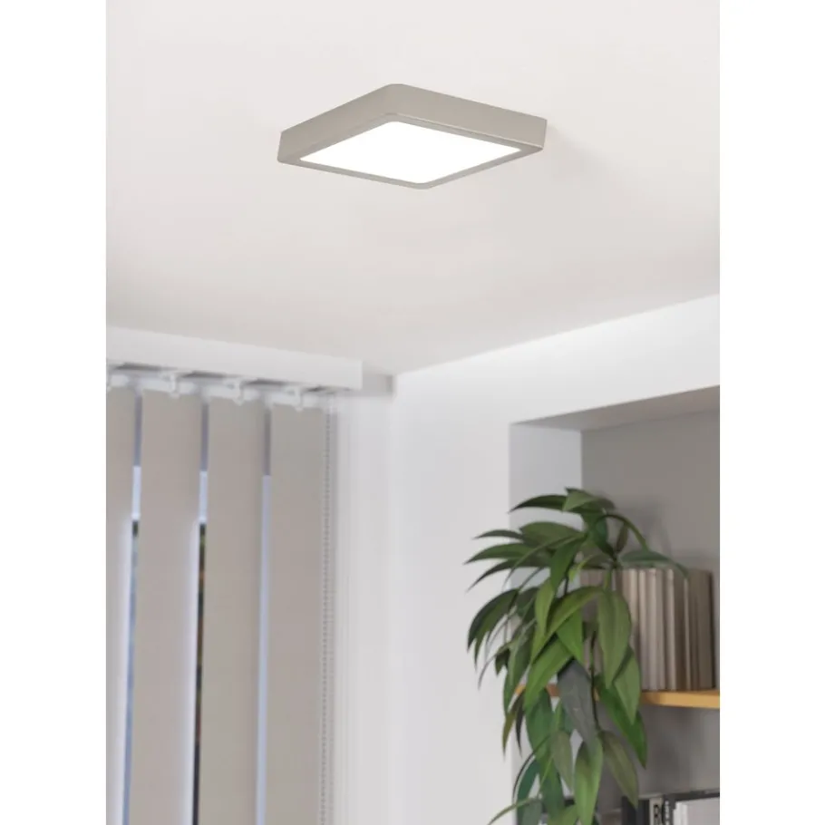 De LED opbouwarmatuur FUEVA 5 uit mat nikkel metaal past dankzij haar zeer geringe hoogte van slechts 28 mm en haar vierkante vorm met afgeronde hoeken in nagenoeg elke interieurstijl. De geïntegreerde LEDs stralen een neutraal wit licht uit en blijven onzichtbaar dankzij de witte diffuser. Dankzij de geringe hoogte kan deze plafondlamp ook probleemloos als wandlamp worden gebruikt. Deze hoogwaardige armatuur zonder zichtbare schroeven op de behuizing is zeer eenvoudig te installeren dankzij de speciale plafondbeugel. Het tijdloze ontwerp en het neutraal witte werklicht van deze opbouwarmatuur zijn perfect voor elke ruimte waar een bepaalde zone goed verlicht moet worden, bijvoorbeeld in de keuken, de gang, de wasruimte of het kantoor.