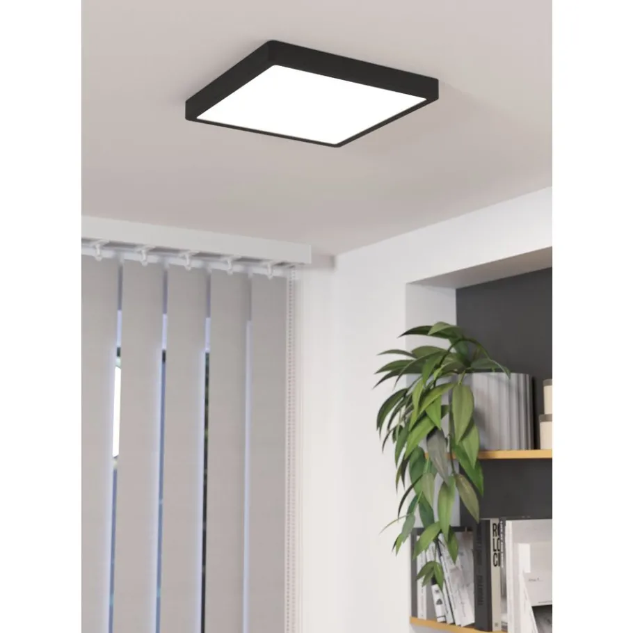 De FUEVA 5 LED opbouwarmatuur van zwart metaal past dankzij haar zeer geringe hoogte van slechts 28 mm en haar vierkante vorm met afgeronde hoeken in nagenoeg elke interieurstijl. De geïntegreerde LEDs stralen een neutraal wit licht uit en blijven onzichtbaar dankzij de witte diffuser. Dankzij de geringe hoogte kan deze plafondlamp ook probleemloos als wandlamp worden gebruikt. Deze hoogwaardige armatuur zonder zichtbare schroeven op de behuizing is zeer eenvoudig te installeren dankzij de speciale plafondbeugel. Het tijdloze design en het neutraal witte werklicht van deze opbouwarmatuur zijn ideaal voor alle ruimtes waar een bepaalde zone goed verlicht moet worden, bijvoorbeeld in de keuken, de gang, de wasruimte of het kantoor.