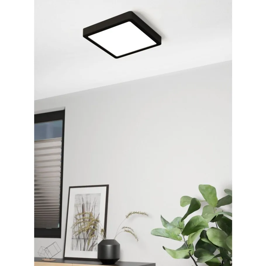 De FUEVA 5 LED opbouwarmatuur van zwart metaal past dankzij haar zeer geringe hoogte van slechts 28 mm en haar vierkante vorm met afgeronde hoeken in nagenoeg elke interieurstijl. De geïntegreerde LEDs stralen een neutraal wit licht uit en blijven onzichtbaar dankzij de witte diffuser. Dankzij de geringe hoogte kan deze plafondlamp ook probleemloos als wandlamp worden gebruikt. Deze hoogwaardige armatuur zonder zichtbare schroeven op de behuizing is zeer eenvoudig te installeren dankzij de speciale plafondbeugel. Het tijdloze design en het neutraal witte werklicht van deze opbouwarmatuur zijn ideaal voor alle ruimtes waar een bepaalde zone goed verlicht moet worden, bijvoorbeeld in de keuken, de gang, de wasruimte of het kantoor.