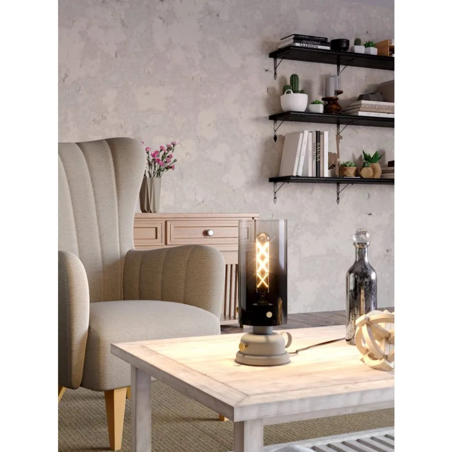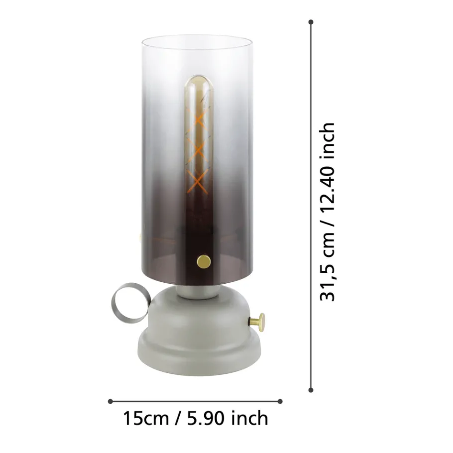 Eglo GARGRAVE Tafellampen staal grijs, geborsteld messing / glas gestoomd zwart, bruin, transparant H: 315 mm | Ø 110 mm