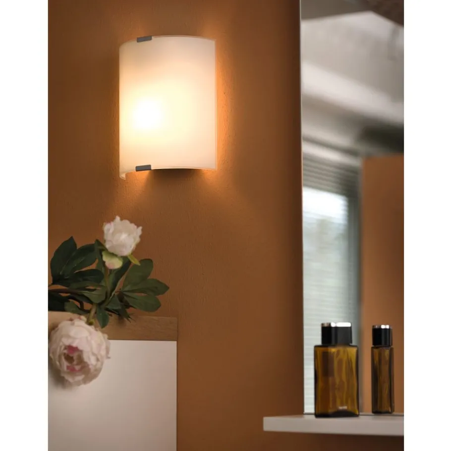 Eglo GRAFIK Wand-/plafondlamp staal zilver / glas satijn wit H: 210 mm