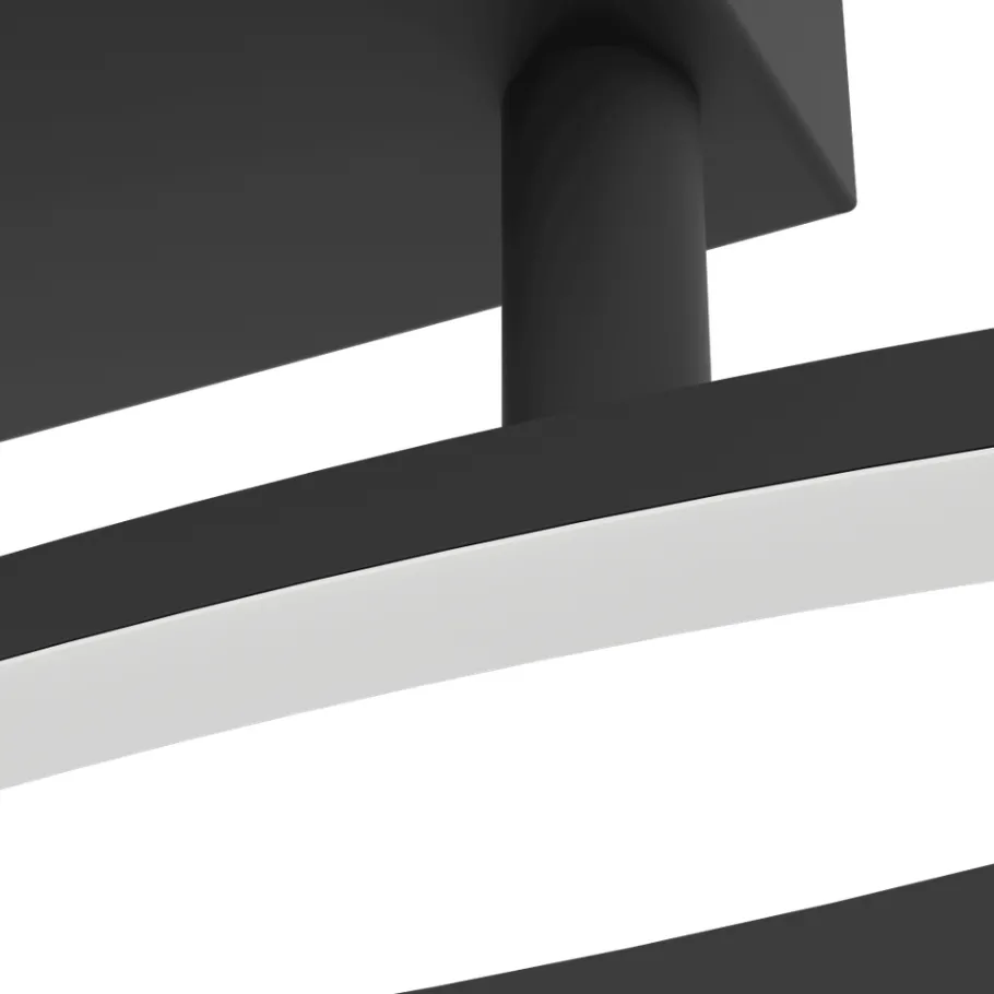 Deze GRISOLIA plafondlamp in zwart golfpatroon is onmisbaar in een modern interieur. Twee ledlijnen brengen met hun golvende vorm dynamiek in een moderne huiskamer, slaapkamer of in een lange gang. Deze plafondlamp schijnt 1500 lumen en 4000 Kelvin, iets wat prima in een strakke woning past.