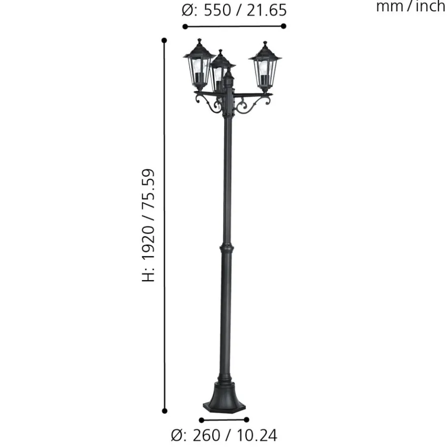 De BELFORT 4 buitenpaal met zijn lantaarnachtige ontwerp bestaat uit een zwart gegoten aluminium behuizing met transparant glas. Deze buitenlamp is spatwaterdicht (IP44) en kan dus zonder angst buiten worden gebruikt. De klassieke stijl is een aanvulling op jouw buitenruimte en biedt voldoende verlichting, bijvoorbeeld voor een stedelijke villa met een antieke of art nouveau-stijl. De afgebeelde lampen zijn niet inbegrepen. De buitenlamp van 192 cm is compatibel met elke E27-lichtbron.