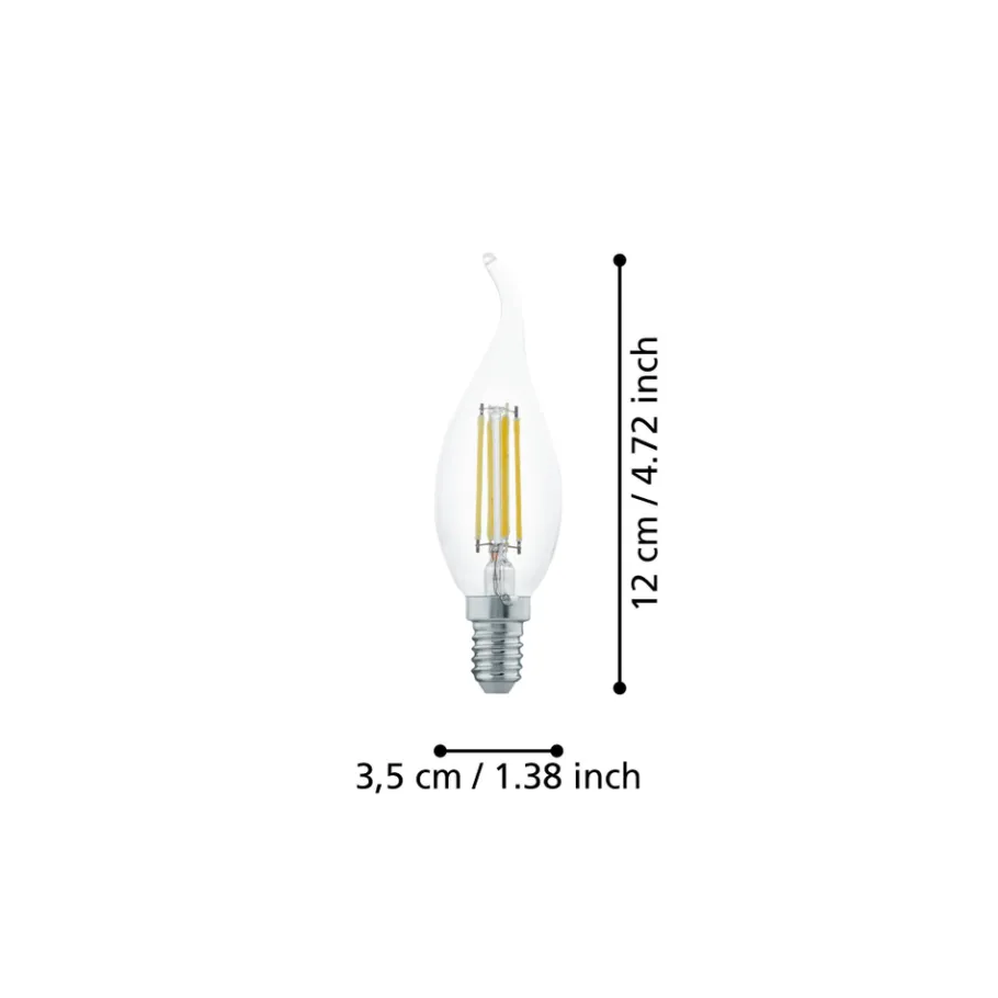 De E14 LED lamp met zichtbaar filament is gemaakt van helder glas. De klassieke 4 Watt LED lamp (CF35) geeft een aangenaam warm wit licht van 350 lumen. Met zijn kaarsachtige vorm is deze LED lamp ideaal om bijvoorbeeld als lamp voor een kroonluchter te gebruiken.