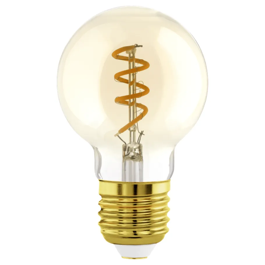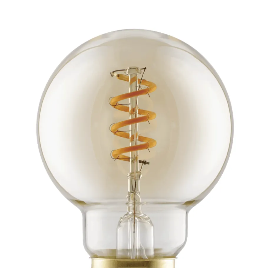De kleine decoratieve E27 LED-lamp is afgewerkt met amberkleurig glas. De spiraalvormige LEDs vullen het expressieve design perfect aan. De LED-lamp (G60) produceert een aangenaam warm wit licht en kan worden gedimd (afhankelijk van de dimfuncties van je lamp). Met zijn opvallende afwerking in een populaire vintage stijl, werkt de globe lamp perfect als een op zichzelf staande decoratieve lamp, waardoor opvallende verlichting in elke woonruimte ontstaat.
