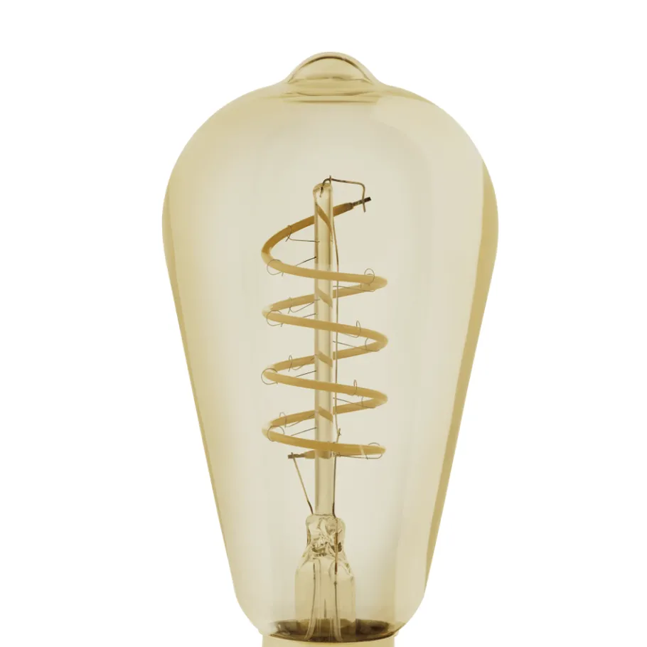 De E27 LED lichtbron is gemaakt van amberkleurig glas met spiraalvormige LEDs. De 4 Watt LED lamp (ST64) geeft een aangenaam warm wit licht van 245 lumen en kan gedimd worden (afhankelijk van de dim eigenschappen van het armatuur). Dankzij het gouden effect in een trendy vintage design kan deze LED lamp ook perfect in het zicht hangen en zal ze een blikvanger zijn in elke kamer.