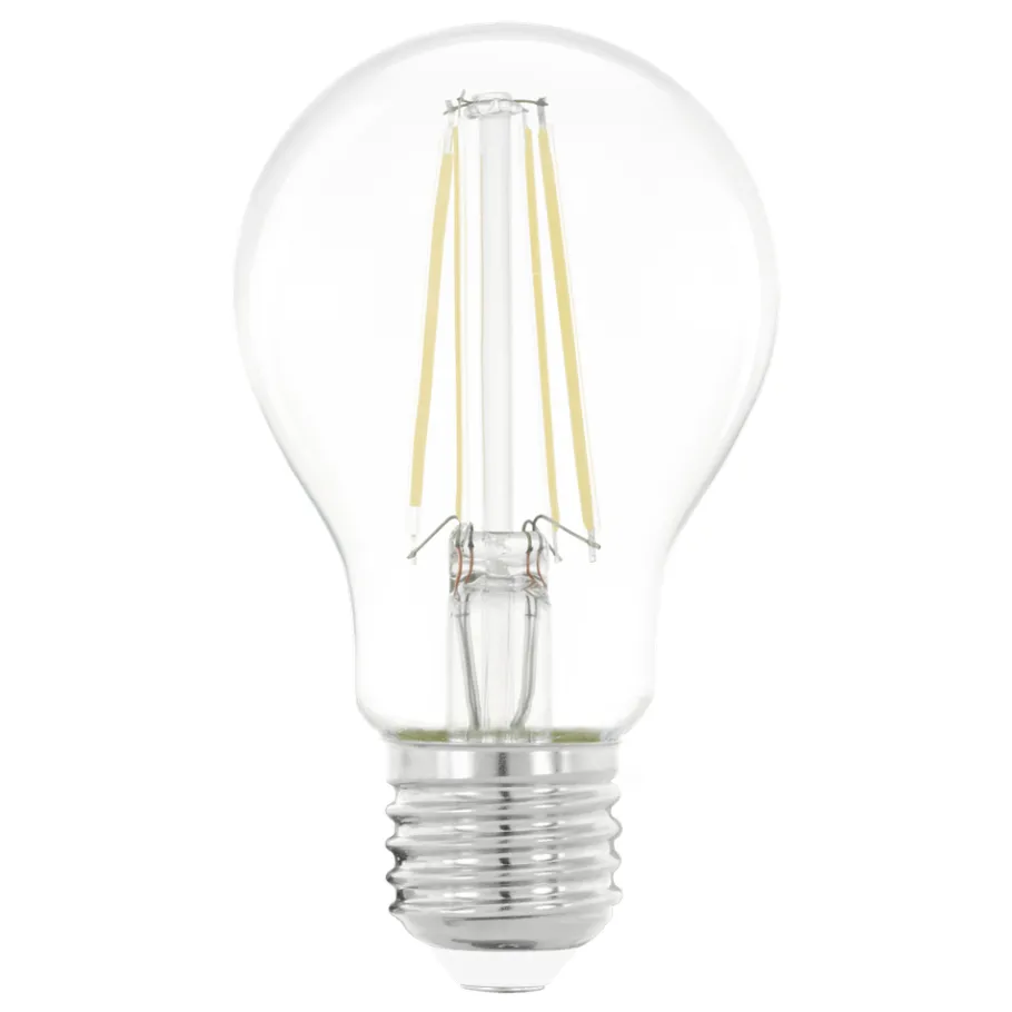 De E27 LED lamp met zichtbaar filament is gemaakt van helder glas. De klassieke 7 Watt LED lamp (A60) straalt een aangenaam warm wit licht van 806 lumen.