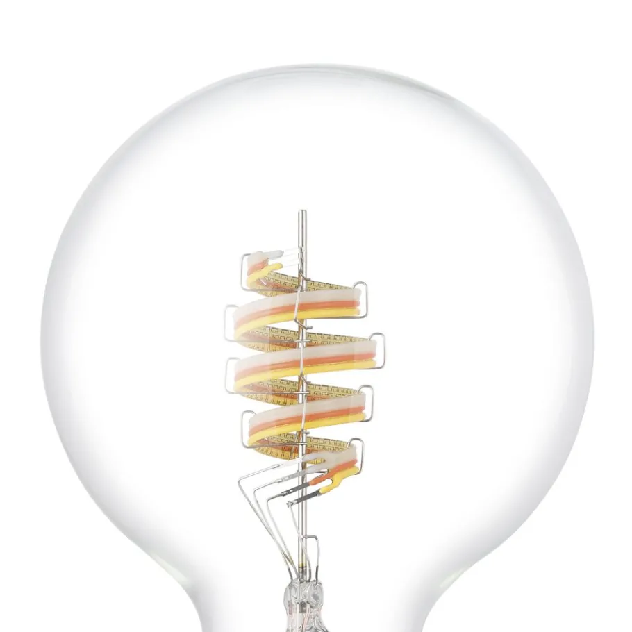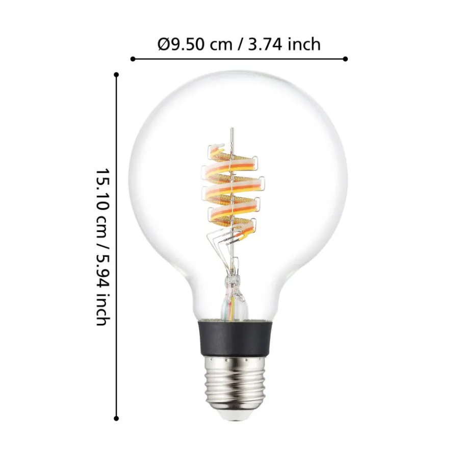 De E27 (G95) LED-lamp uit het Smart Home connect-Z assortiment is gemaakt van helder kunststof. Deze LED-lamp verspreidt een aangenaam licht volgens uw voorkeuren. Je kunt kiezen tussen warm wit, neutraal wit en koel wit, met een veelvoud aan RGB lichtkleuren. De gloeilamp wordt bediend via de gratis app (AwoX Home Control) en geeft u toegang tot andere comfortfuncties zoals dimmer, timer, aanwezigheidssimulatie en nog veel meer. De lamp wordt beheerd via Bluetooth of ZigBee 3.0. Bediening via compatibele spraakassistent is ook mogelijk. Indien nodig kunt u ook ZigBee 3.0 slimme armaturen van andere fabrikanten in het systeem integreren via een bridge (die geen deel uitmaakt van ons aanbod, controleer de technische vereisten van het betreffende product). De slimme lamp kan ook worden bediend met een apart verkrijgbare afstandsbediening. Door uw klassieke lamp te vervangen door een connect lamp. Z van EGLO kunt u uw eenvoudige armaturen omtoveren tot slimme armaturen en deze in het systeem integreren.