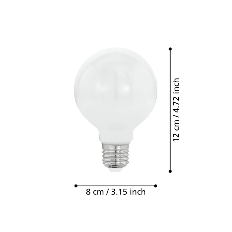 De E27 LED lamp is gemaakt van wit glas en biedt 360° verlichting dankzij de glazen behuizing. De 7 Watt LED globe lamp (G80) geeft een aangenaam warm wit licht van 806 lumen. De opalen lichtbron zorgt voor een gelijkmatige, niet-verblindende verlichting.