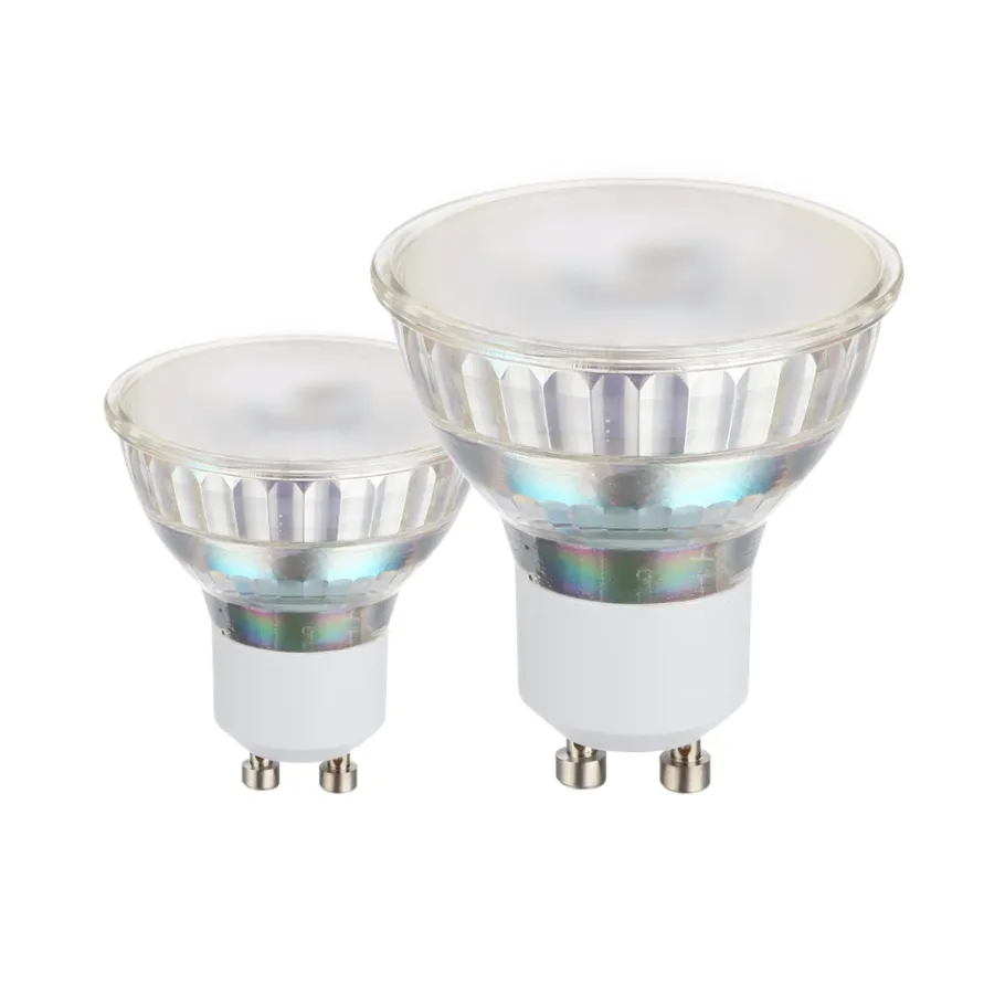 De GU10 LED lampenset bestaat uit twee lampen van gesatineerd kunststof. De 4,8 Watt LED lampen geven elk een aangenaam warm wit licht van 400 lumen.