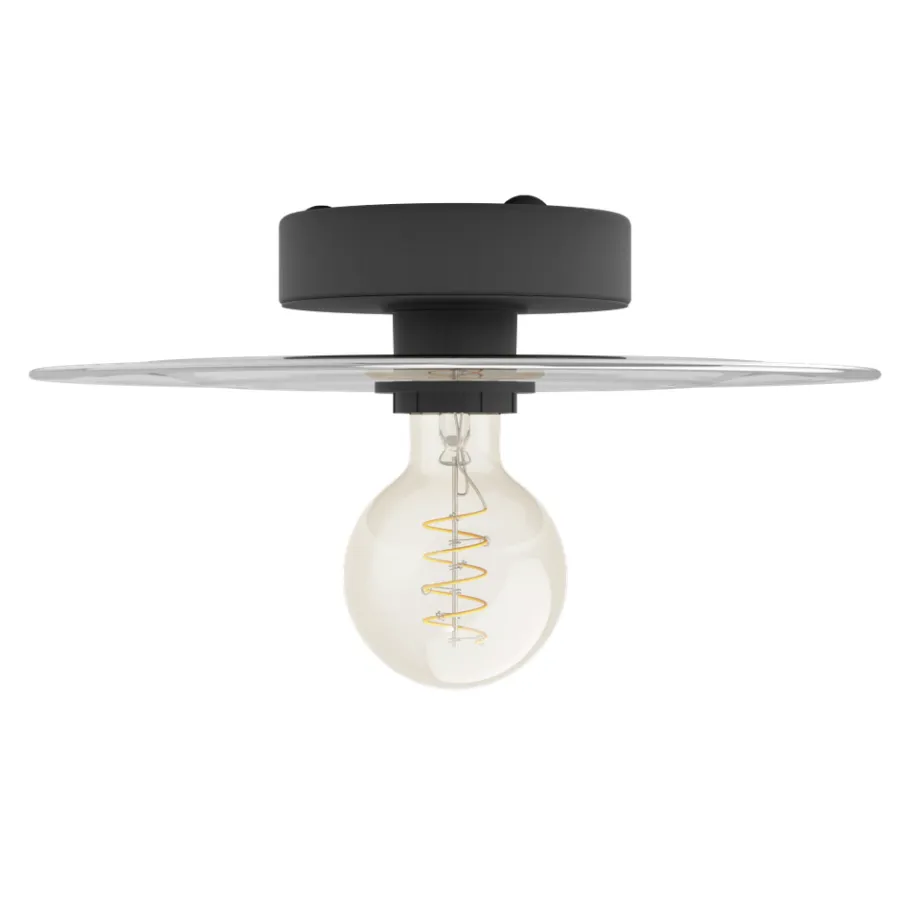 Eglo LINTMILL Wand-/plafondlamp staal zwart / Glas grijs H: 75 mm | Ø 300 mm New
