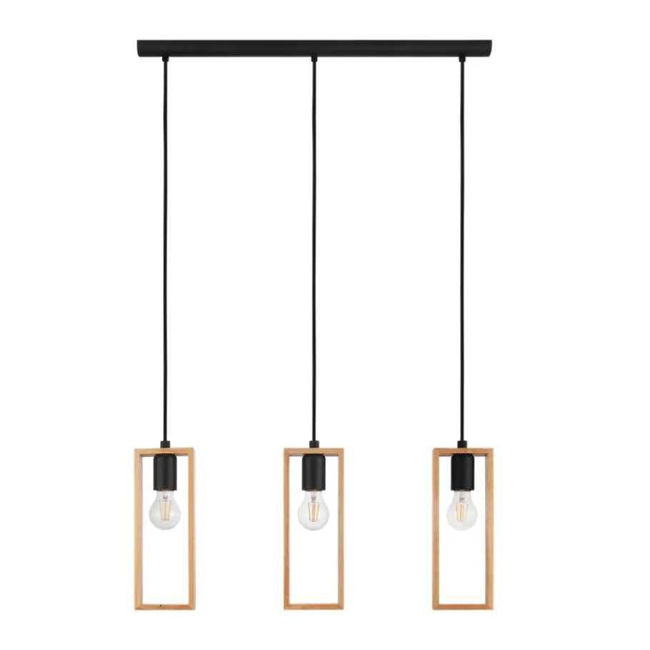 Eglo LITTLETON hanglamp staal zwart / Hout bruin H: 1100 mm Clearance
