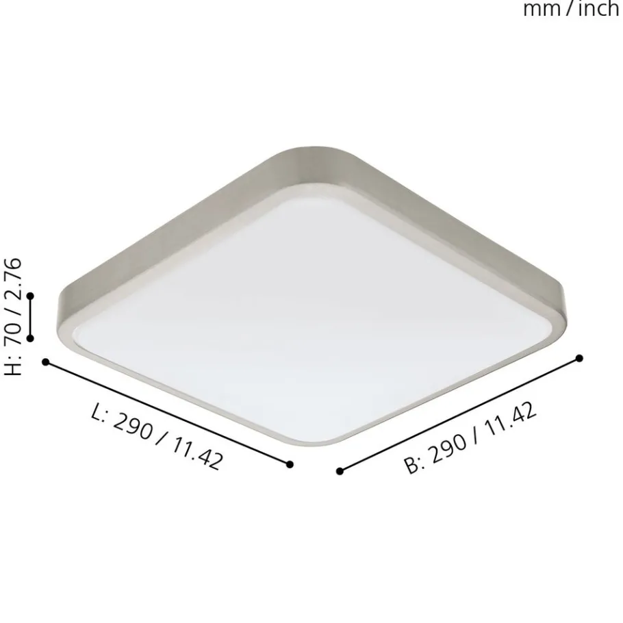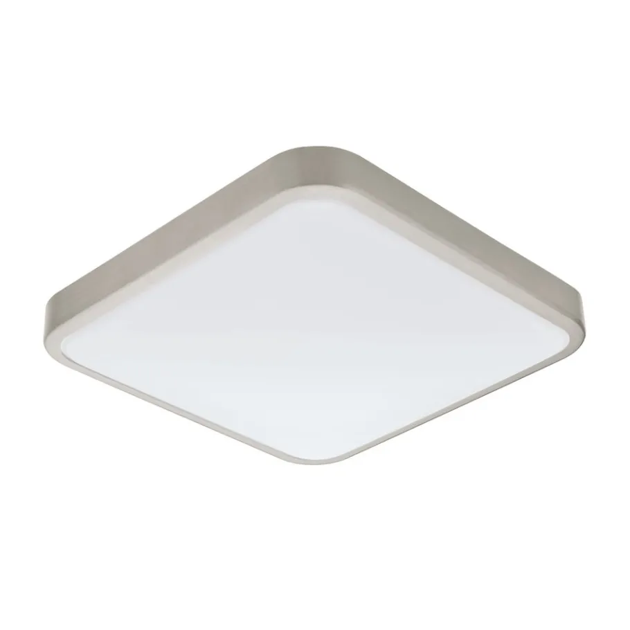 De plafondlamp MANILVA 1 LED bestaat uit een vierkant lichaam van mat nikkel metaal met afgeronde randen en een wit kunststof lichtoppervlak. Dankzij het spatwaterdichte ontwerp (IP44) kan de armatuur zonder angst in de badkamer worden gebruikt. De geïntegreerde LEDs geven een aangenaam warm wit licht. Dit armatuur is bijzonder geschikt voor gebruik in moderne ruimtes zoals de keuken, woonkamer, slaapkamer of hal.