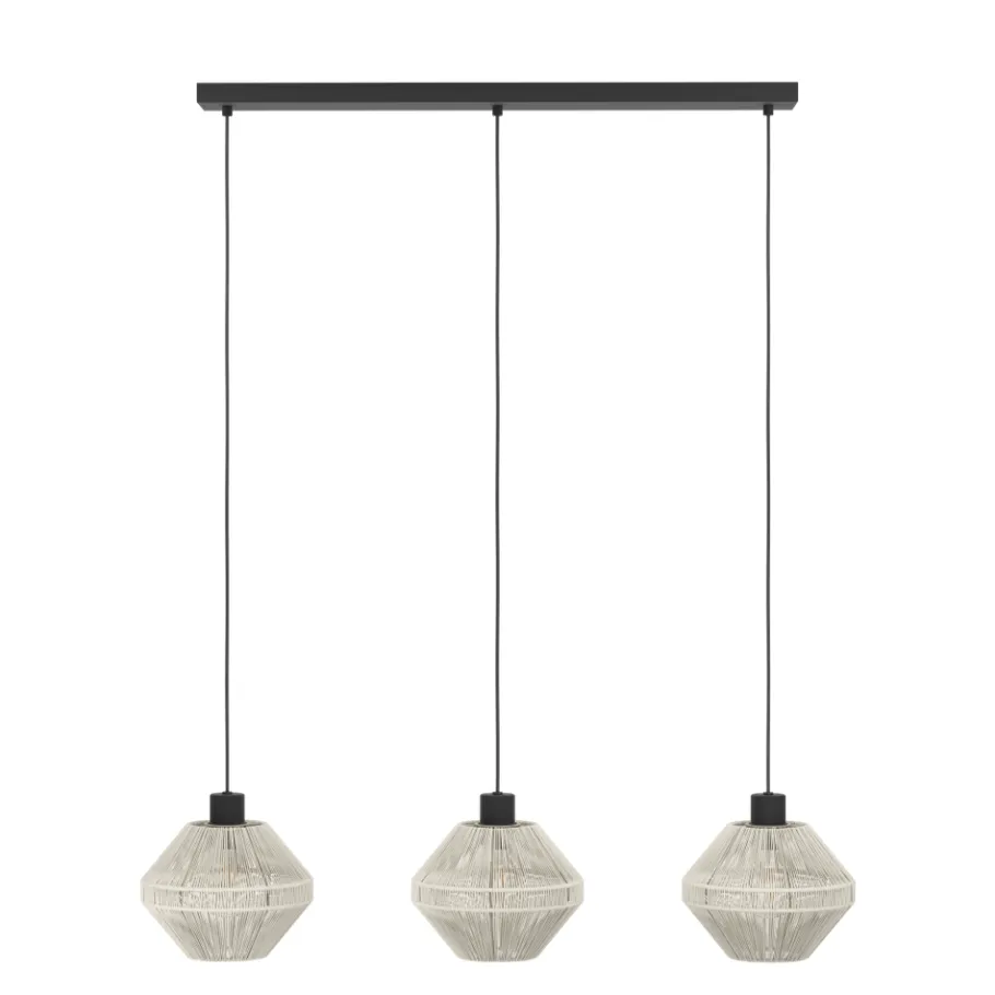 Eglo MIDSUMER hanglamp staal zwart / textiel crème H: 1100 mm Outlet