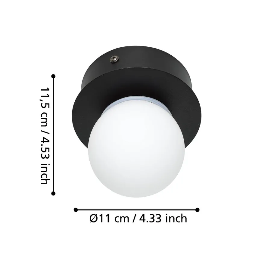 Eglo MOSIANO Wand-/plafondlamp staal zwart / glas opaal-mat wit H: 115 mm | Ø 110 mm Outlet