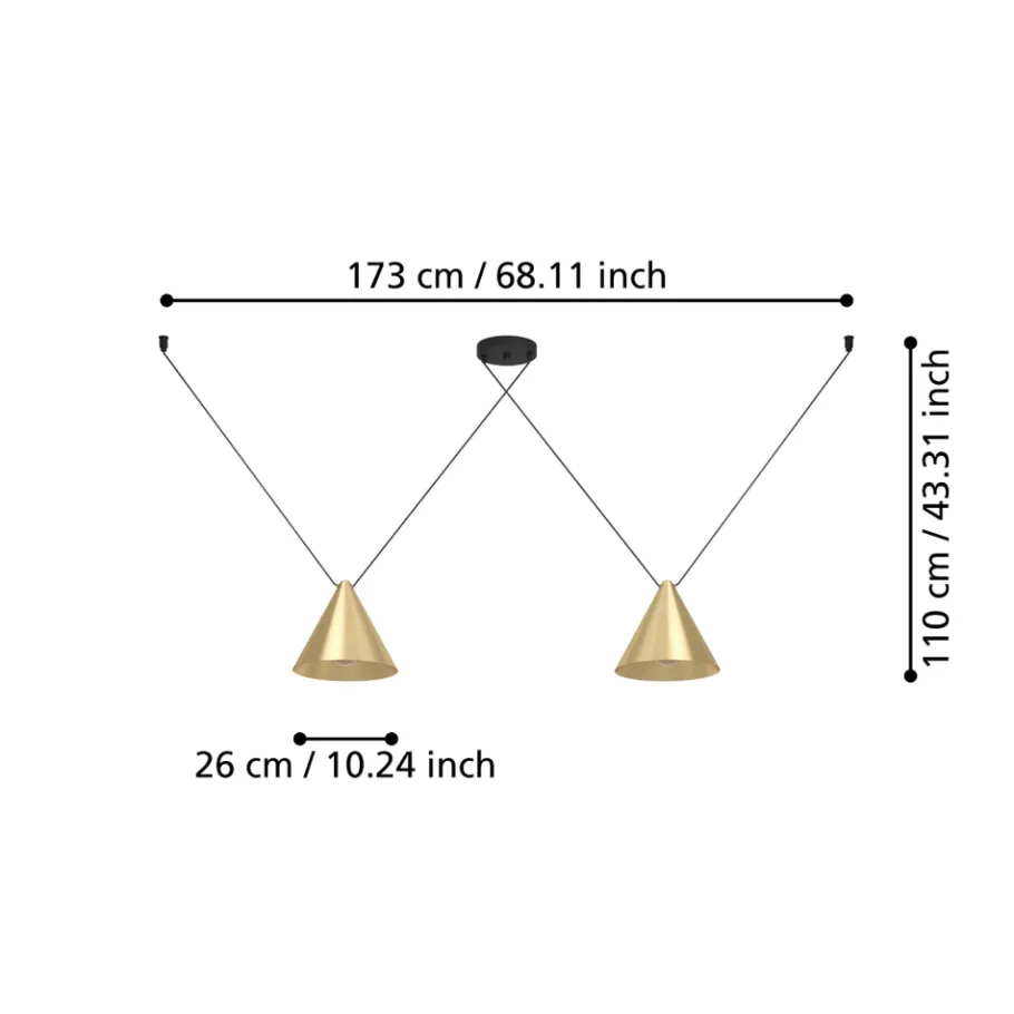 Eglo NARICES 1 hanglamp staal zwart / staal geborsteld messing, goud H: 1100 mm New