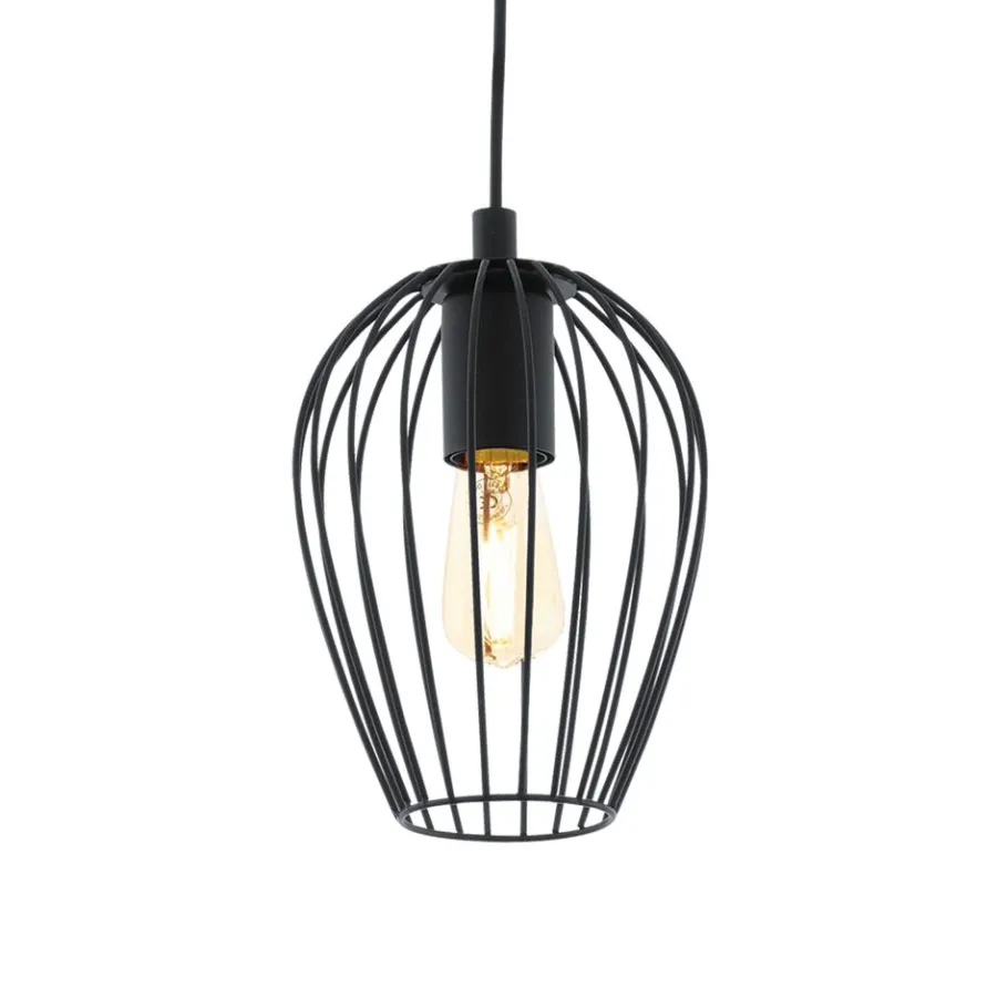 De NEWTOWN hanglamp bestaat uit een zwarte, ovale draadkap die aan een ronde zwart metalen kap hangt. De draadkap creëert een prachtig spel van licht en schaduw wanneer de lamp wordt ingeschakeld. De hanglamp past perfect in moderne interieurs en zorgt voor warme verlichting in de woonkamer of eetkamer. De afgebeelde lichtbron is niet inbegrepen. De armatuur is compatibel met elke E27 lamp.